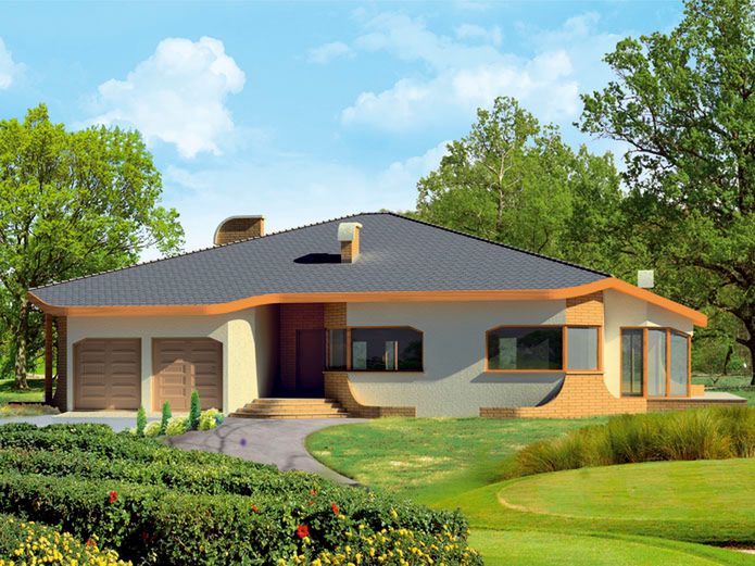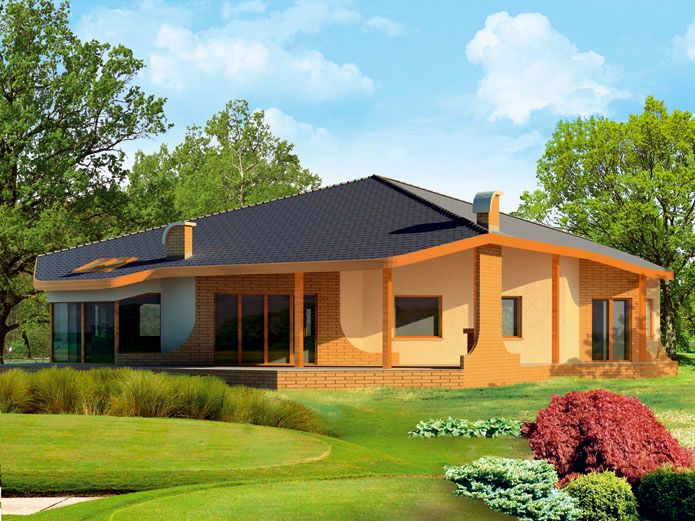 Graficzne opracowanie rzutów poglądowych widocznych na karcie projektu zostało wykonane przez Extradom.pl. Prezentowane przez Extradom.pl wizualizacje wykonane zostały przez autora projektu i należy poczytywać je jedynie za przykład i propozycję wykończenia, wizję architektoniczną autora projektu. Ostateczne wykończenie budynku może nastąpić na wiele sposobów. Szczegółowe rozwiązania zastosowane w oferowanej dokumentacji - w tym również ilość, lokalizacje i wygląd okien, drzwi, kominów - mogą w niewielkim stopniu różnić się od prezentowanej wizualizacji budynku.