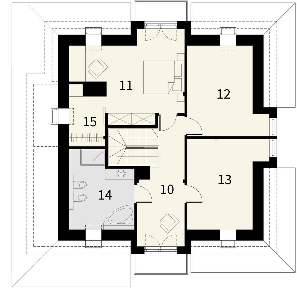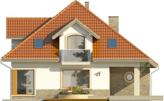 Graficzne opracowanie rzutów poglądowych widocznych na karcie projektu zostało wykonane przez Extradom.pl. Prezentowane przez Extradom.pl wizualizacje wykonane zostały przez autora projektu i należy poczytywać je jedynie za przykład i propozycję wykończenia, wizję architektoniczną autora projektu. Ostateczne wykończenie budynku może nastąpić na wiele sposobów. Szczegółowe rozwiązania zastosowane w oferowanej dokumentacji - w tym również ilość, lokalizacje i wygląd okien, drzwi, kominów - mogą w niewielkim stopniu różnić się od prezentowanej wizualizacji budynku.
