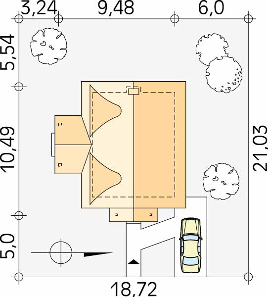 Graficzne opracowanie rzutów poglądowych widocznych na karcie projektu zostało wykonane przez Extradom.pl. Prezentowane przez Extradom.pl wizualizacje wykonane zostały przez autora projektu i należy poczytywać je jedynie za przykład i propozycję wykończenia, wizję architektoniczną autora projektu. Ostateczne wykończenie budynku może nastąpić na wiele sposobów. Szczegółowe rozwiązania zastosowane w oferowanej dokumentacji - w tym również ilość, lokalizacje i wygląd okien, drzwi, kominów - mogą w niewielkim stopniu różnić się od prezentowanej wizualizacji budynku.