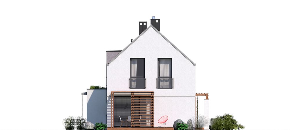 Graficzne opracowanie rzutów poglądowych widocznych na karcie projektu zostało wykonane przez Extradom.pl. Prezentowane przez Extradom.pl wizualizacje wykonane zostały przez autora projektu i należy poczytywać je jedynie za przykład i propozycję wykończenia, wizję architektoniczną autora projektu. Ostateczne wykończenie budynku może nastąpić na wiele sposobów. Szczegółowe rozwiązania zastosowane w oferowanej dokumentacji - w tym również ilość, lokalizacje i wygląd okien, drzwi, kominów - mogą w niewielkim stopniu różnić się od prezentowanej wizualizacji budynku.