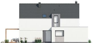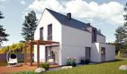 Graficzne opracowanie rzutów poglądowych widocznych na karcie projektu zostało wykonane przez Extradom.pl. Prezentowane przez Extradom.pl wizualizacje wykonane zostały przez autora projektu i należy poczytywać je jedynie za przykład i propozycję wykończenia, wizję architektoniczną autora projektu. Ostateczne wykończenie budynku może nastąpić na wiele sposobów. Szczegółowe rozwiązania zastosowane w oferowanej dokumentacji - w tym również ilość, lokalizacje i wygląd okien, drzwi, kominów - mogą w niewielkim stopniu różnić się od prezentowanej wizualizacji budynku.