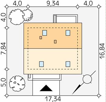 Graficzne opracowanie rzutów poglądowych widocznych na karcie projektu zostało wykonane przez Extradom.pl. Prezentowane przez Extradom.pl wizualizacje wykonane zostały przez autora projektu i należy poczytywać je jedynie za przykład i propozycję wykończenia, wizję architektoniczną autora projektu. Ostateczne wykończenie budynku może nastąpić na wiele sposobów. Szczegółowe rozwiązania zastosowane w oferowanej dokumentacji - w tym również ilość, lokalizacje i wygląd okien, drzwi, kominów - mogą w niewielkim stopniu różnić się od prezentowanej wizualizacji budynku.