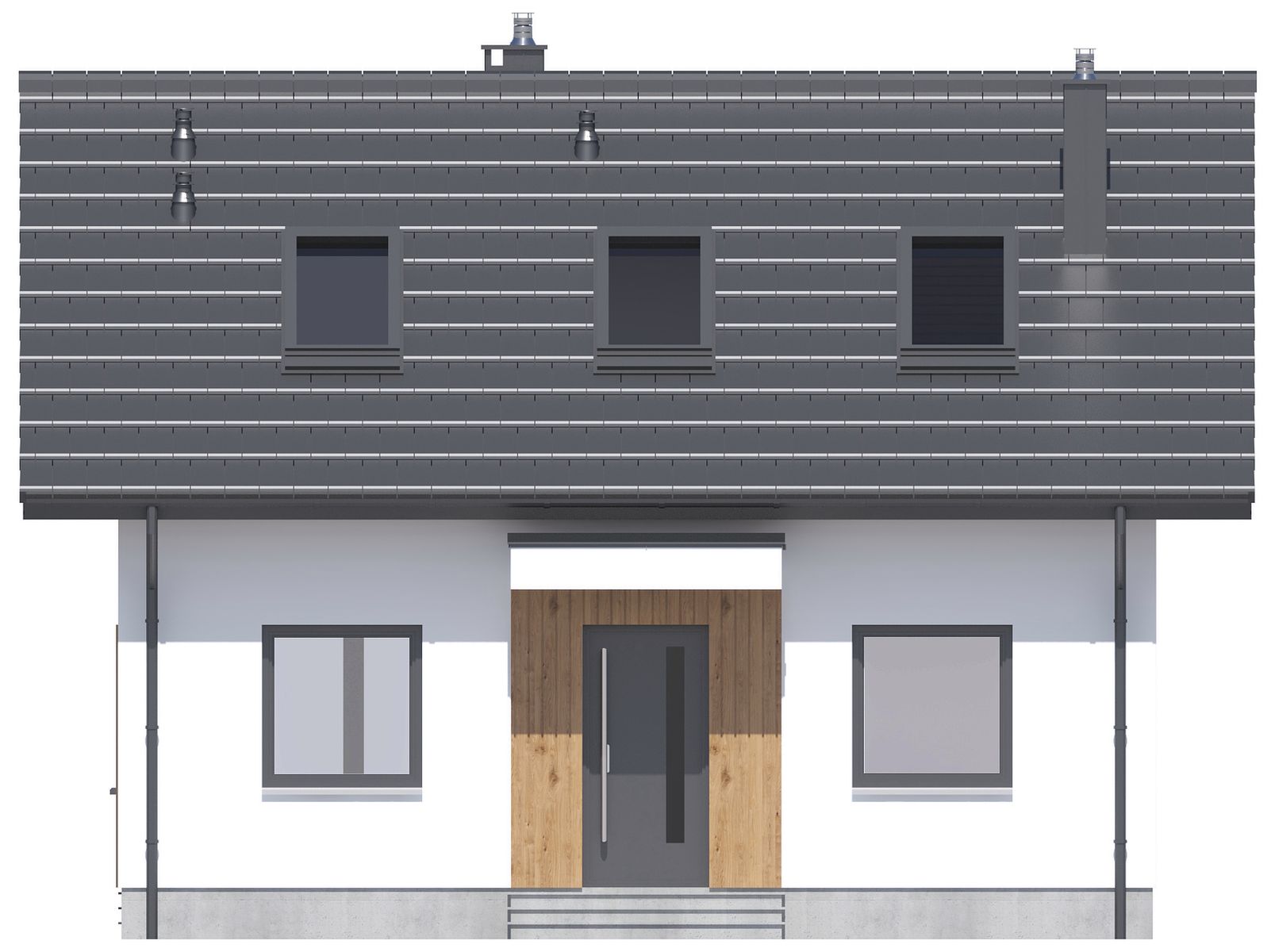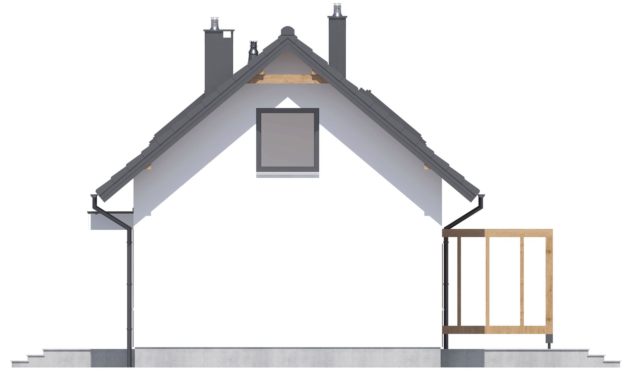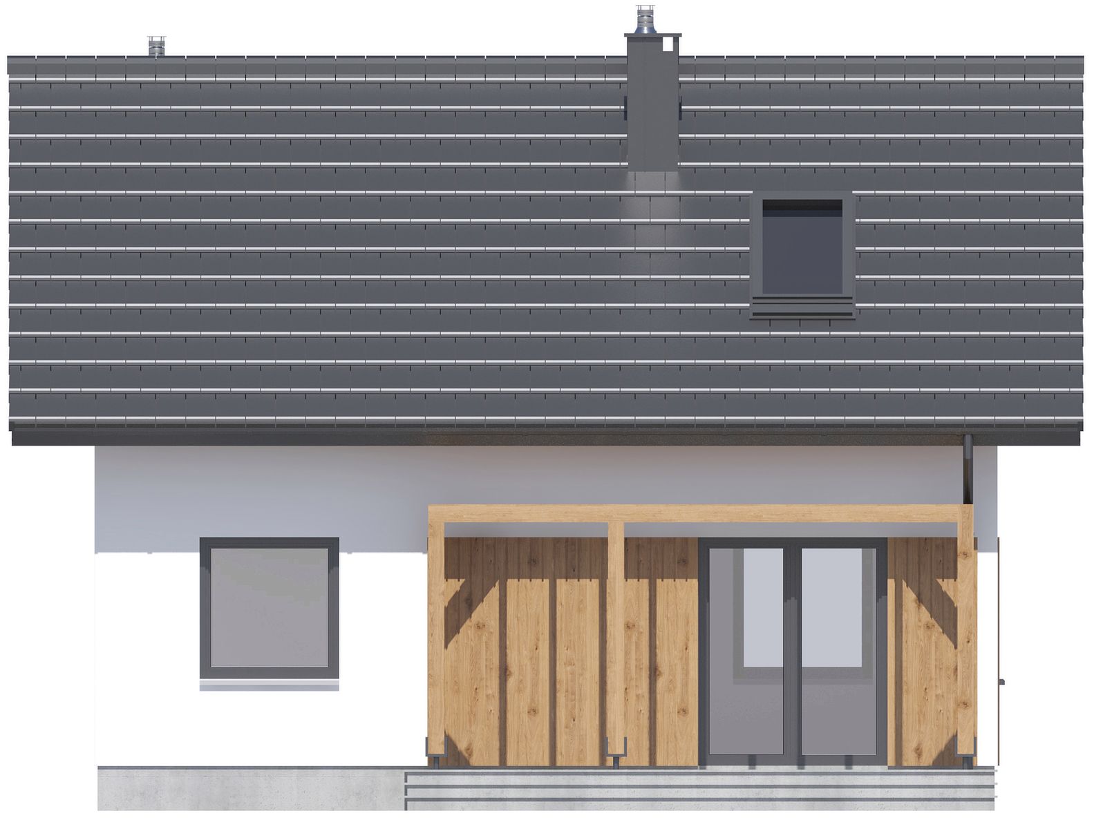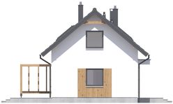 Graficzne opracowanie rzutów poglądowych widocznych na karcie projektu zostało wykonane przez Extradom.pl. Prezentowane przez Extradom.pl wizualizacje wykonane zostały przez autora projektu i należy poczytywać je jedynie za przykład i propozycję wykończenia, wizję architektoniczną autora projektu. Ostateczne wykończenie budynku może nastąpić na wiele sposobów. Szczegółowe rozwiązania zastosowane w oferowanej dokumentacji - w tym również ilość, lokalizacje i wygląd okien, drzwi, kominów - mogą w niewielkim stopniu różnić się od prezentowanej wizualizacji budynku.