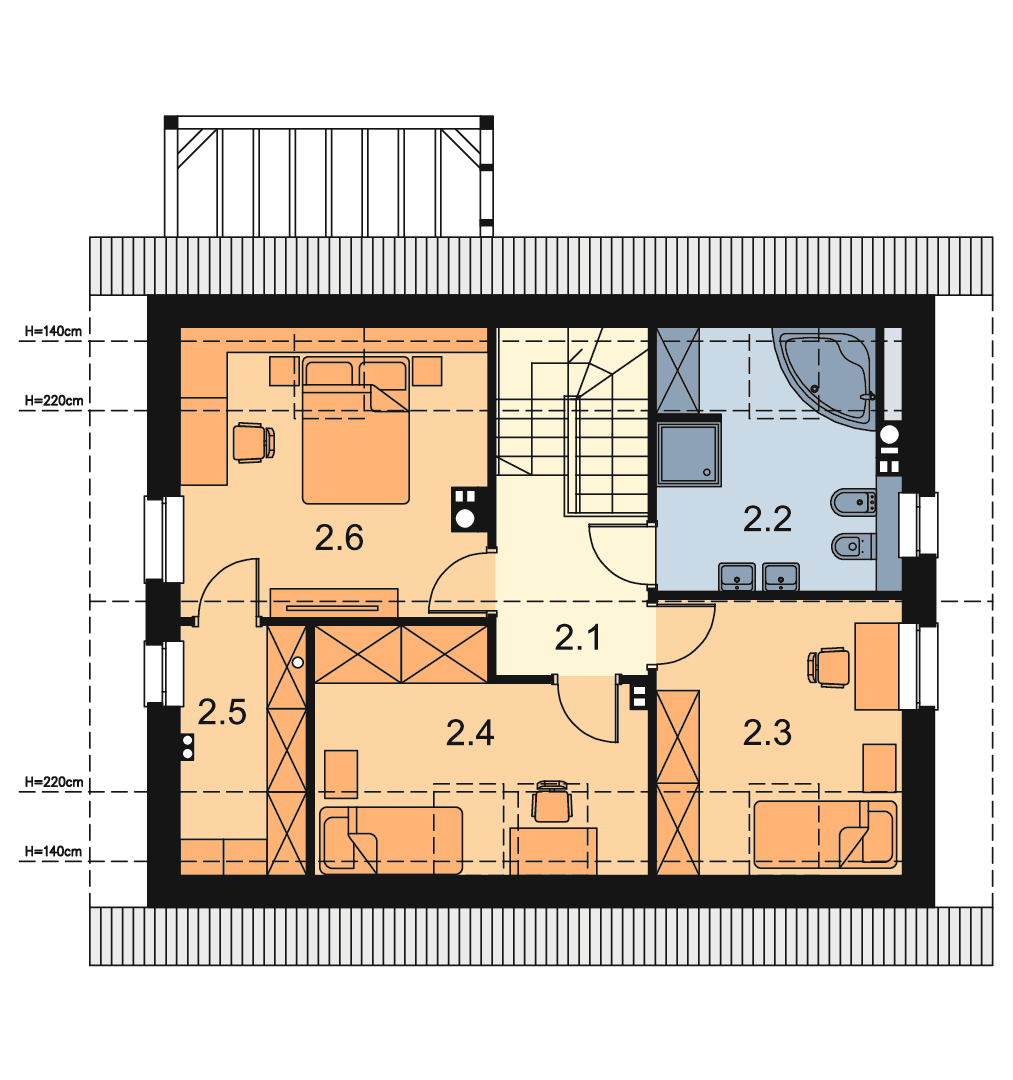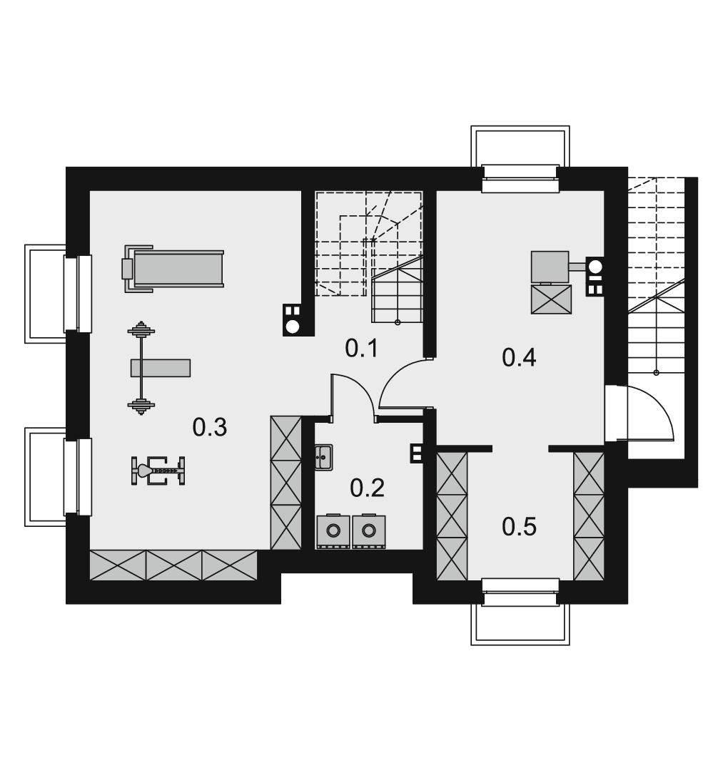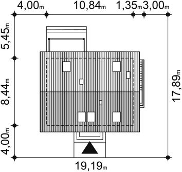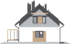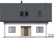 Graficzne opracowanie rzutów poglądowych widocznych na karcie projektu zostało wykonane przez Extradom.pl. Prezentowane przez Extradom.pl wizualizacje wykonane zostały przez autora projektu i należy poczytywać je jedynie za przykład i propozycję wykończenia, wizję architektoniczną autora projektu. Ostateczne wykończenie budynku może nastąpić na wiele sposobów. Szczegółowe rozwiązania zastosowane w oferowanej dokumentacji - w tym również ilość, lokalizacje i wygląd okien, drzwi, kominów - mogą w niewielkim stopniu różnić się od prezentowanej wizualizacji budynku.