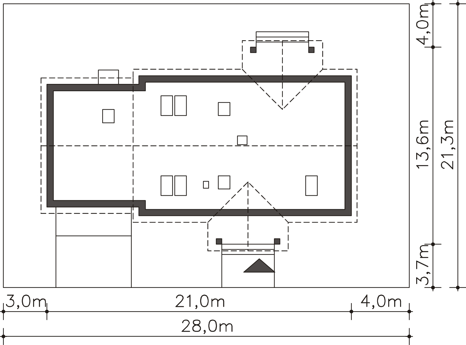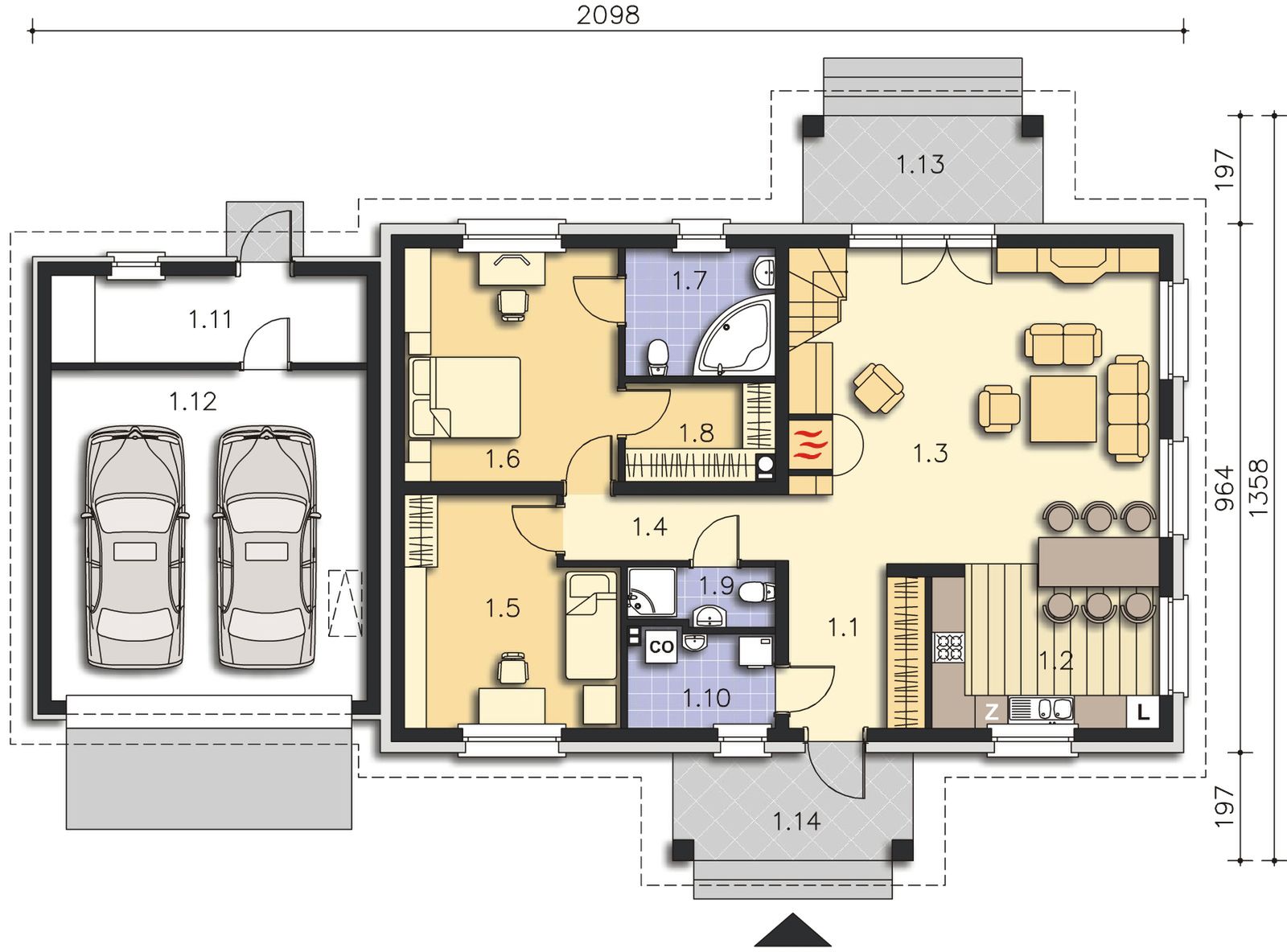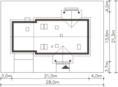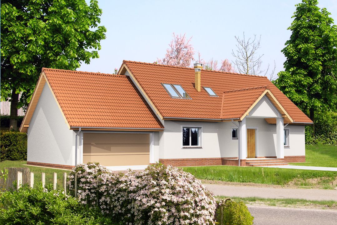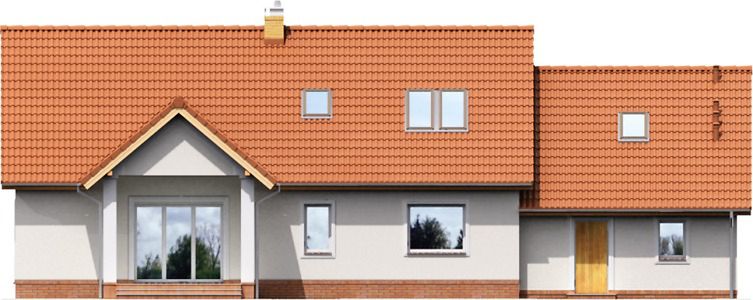 Graficzne opracowanie rzutów poglądowych widocznych na karcie projektu zostało wykonane przez Extradom.pl. Prezentowane przez Extradom.pl wizualizacje wykonane zostały przez autora projektu i należy poczytywać je jedynie za przykład i propozycję wykończenia, wizję architektoniczną autora projektu. Ostateczne wykończenie budynku może nastąpić na wiele sposobów. Szczegółowe rozwiązania zastosowane w oferowanej dokumentacji - w tym również ilość, lokalizacje i wygląd okien, drzwi, kominów - mogą w niewielkim stopniu różnić się od prezentowanej wizualizacji budynku.