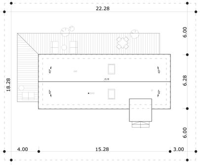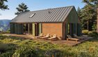 Graficzne opracowanie rzutów poglądowych widocznych na karcie projektu zostało wykonane przez Extradom.pl. Prezentowane przez Extradom.pl wizualizacje wykonane zostały przez autora projektu i należy poczytywać je jedynie za przykład i propozycję wykończenia, wizję architektoniczną autora projektu. Ostateczne wykończenie budynku może nastąpić na wiele sposobów. Szczegółowe rozwiązania zastosowane w oferowanej dokumentacji - w tym również ilość, lokalizacje i wygląd okien, drzwi, kominów - mogą w niewielkim stopniu różnić się od prezentowanej wizualizacji budynku.