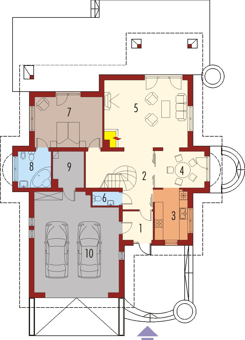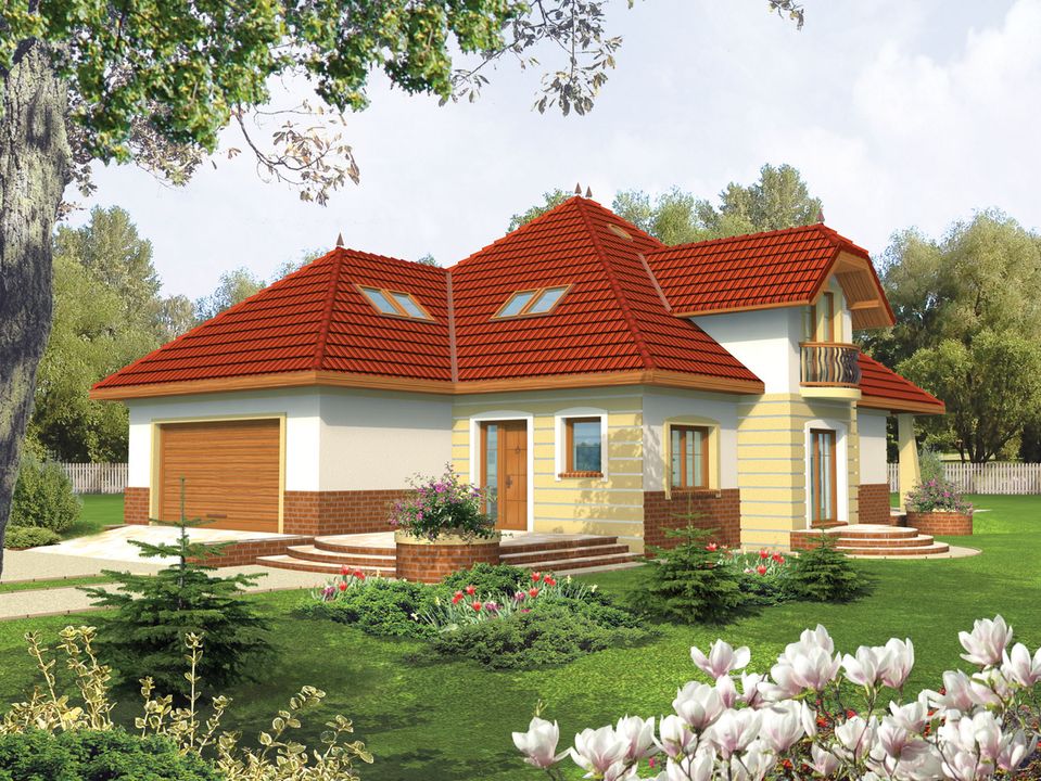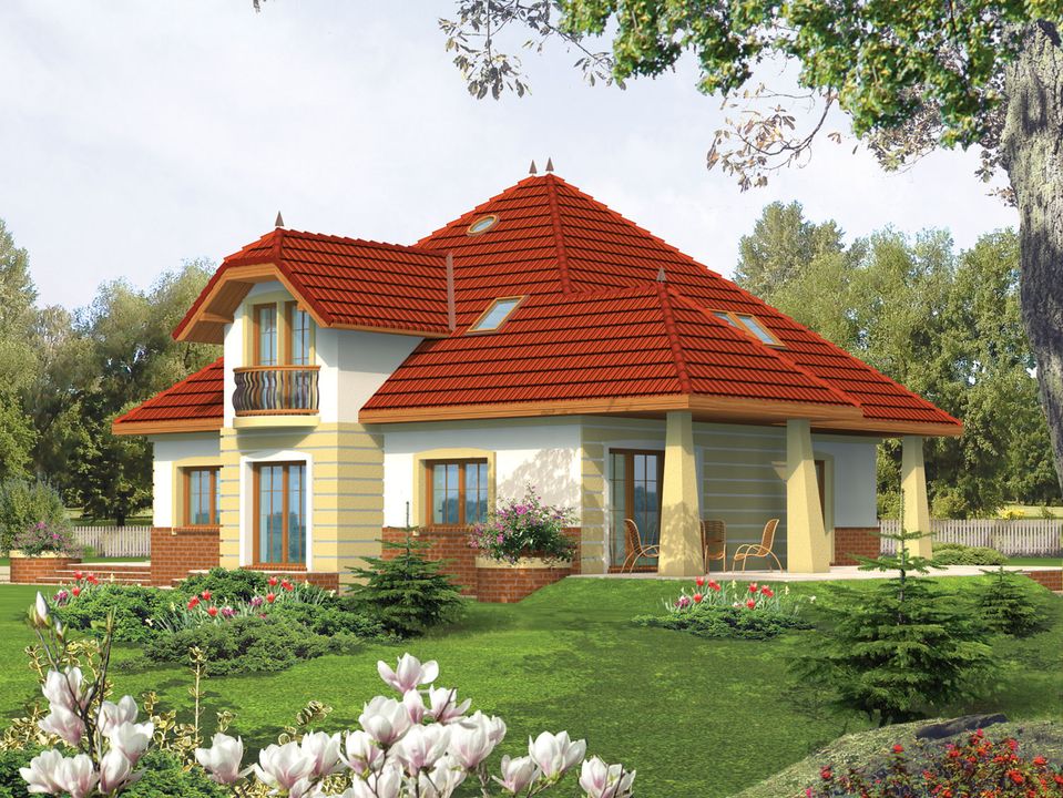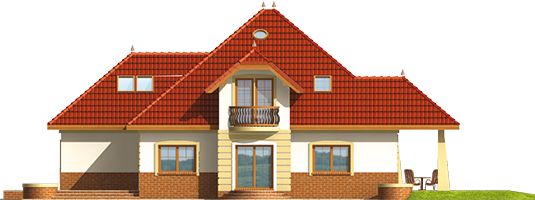 Graficzne opracowanie rzutów poglądowych widocznych na karcie projektu zostało wykonane przez Extradom.pl. Prezentowane przez Extradom.pl wizualizacje wykonane zostały przez autora projektu i należy poczytywać je jedynie za przykład i propozycję wykończenia, wizję architektoniczną autora projektu. Ostateczne wykończenie budynku może nastąpić na wiele sposobów. Szczegółowe rozwiązania zastosowane w oferowanej dokumentacji - w tym również ilość, lokalizacje i wygląd okien, drzwi, kominów - mogą w niewielkim stopniu różnić się od prezentowanej wizualizacji budynku.