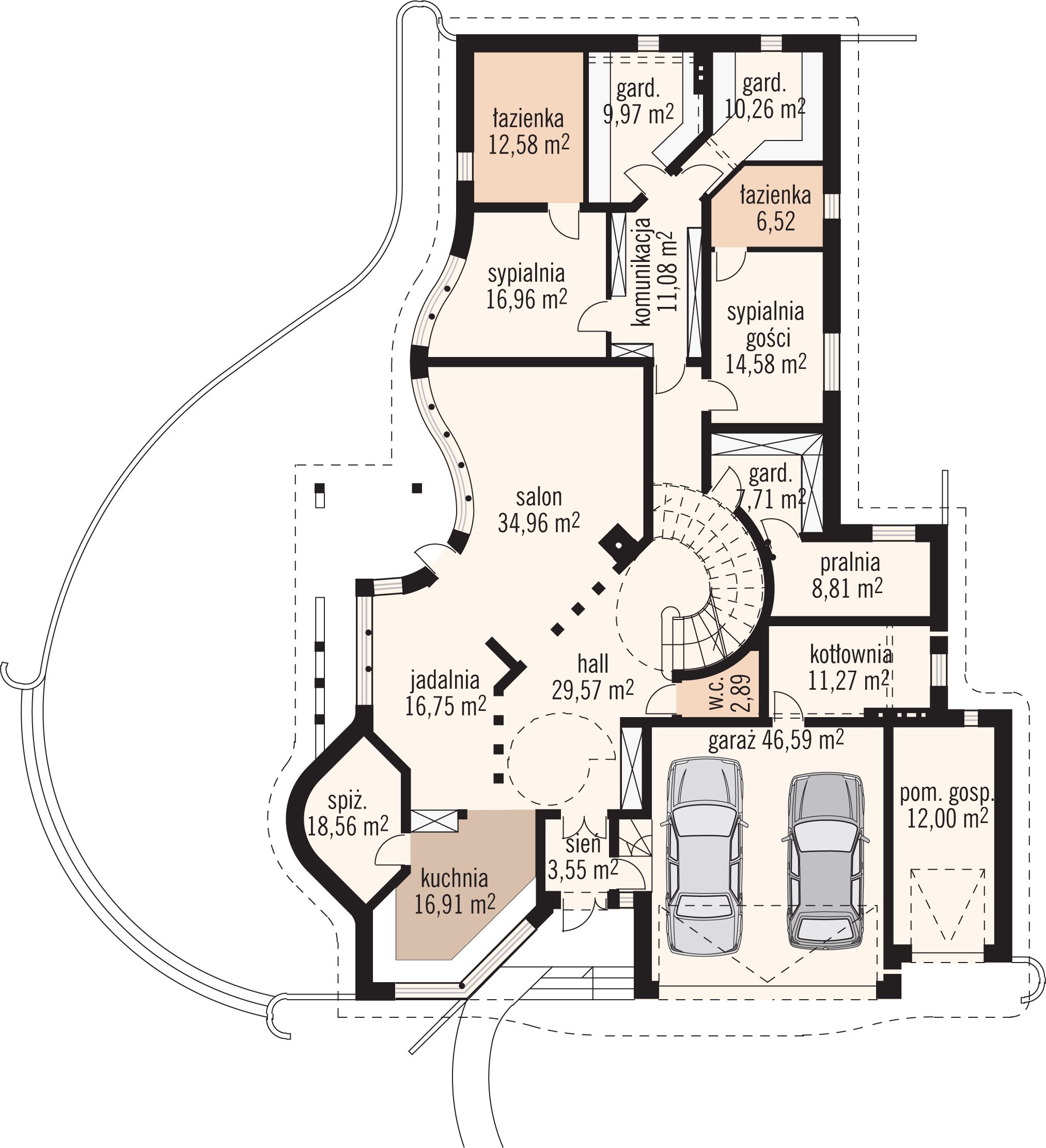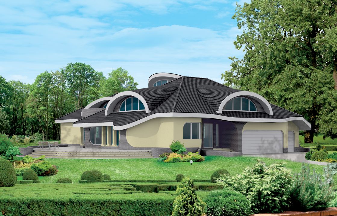 Graficzne opracowanie rzutów poglądowych widocznych na karcie projektu zostało wykonane przez Extradom.pl. Prezentowane przez Extradom.pl wizualizacje wykonane zostały przez autora projektu i należy poczytywać je jedynie za przykład i propozycję wykończenia, wizję architektoniczną autora projektu. Ostateczne wykończenie budynku może nastąpić na wiele sposobów. Szczegółowe rozwiązania zastosowane w oferowanej dokumentacji - w tym również ilość, lokalizacje i wygląd okien, drzwi, kominów - mogą w niewielkim stopniu różnić się od prezentowanej wizualizacji budynku.