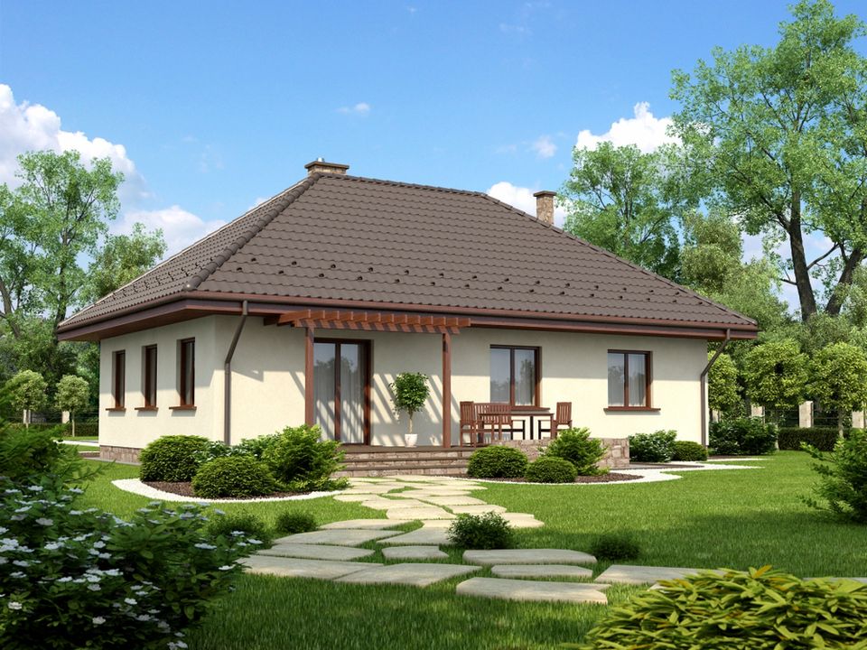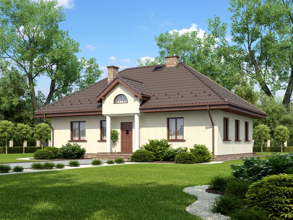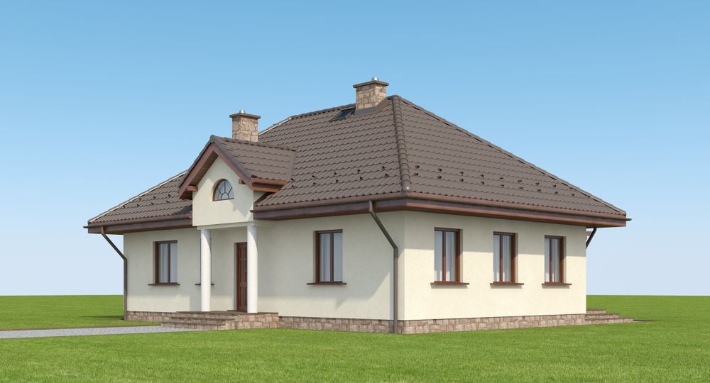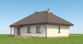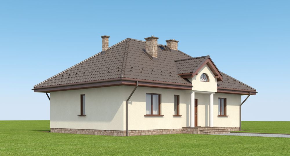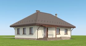 Graficzne opracowanie rzutów poglądowych widocznych na karcie projektu zostało wykonane przez Extradom.pl. Prezentowane przez Extradom.pl wizualizacje wykonane zostały przez autora projektu i należy poczytywać je jedynie za przykład i propozycję wykończenia, wizję architektoniczną autora projektu. Ostateczne wykończenie budynku może nastąpić na wiele sposobów. Szczegółowe rozwiązania zastosowane w oferowanej dokumentacji - w tym również ilość, lokalizacje i wygląd okien, drzwi, kominów - mogą w niewielkim stopniu różnić się od prezentowanej wizualizacji budynku.