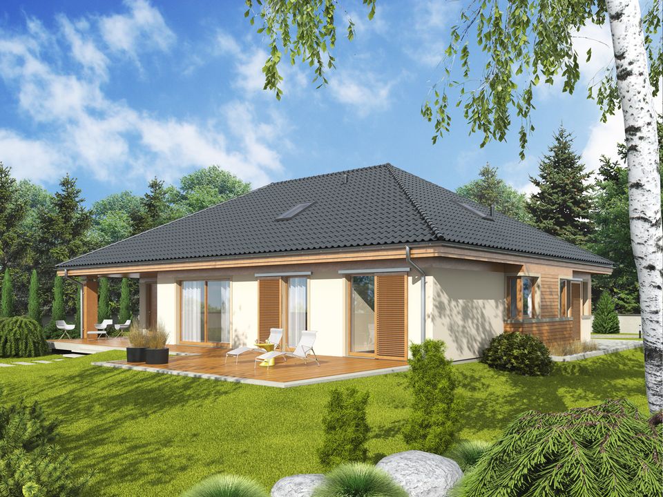 Ściany zewnętrzne: murowane. Strop: międzypiętrowy gęstożebrowy. Dach: konstrukcja drewniana, ocieplenie wełna mineralna, dachówka ceramiczna Röben. Więźba dachowa dostępna również w systemie prefabrykacji drewnianej. Ogrzewanie: kocioł gazowy, rozprowadzenie ciepła: grzejniki. Wentylacja: grawitacyjna. Elewacje: tynk mineralny z okładziną drewnianą. Cokół kamienny. Stolarka: drewniana lub PCV, drzwi wejściowe i brama garażowa firmy Hörmann.