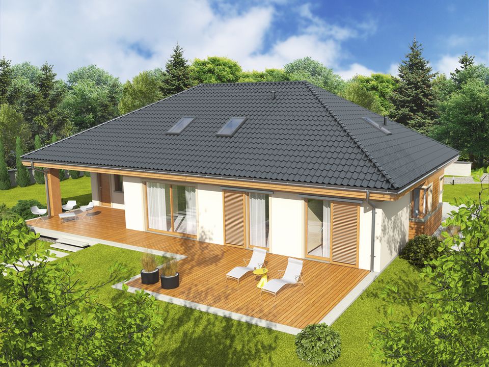 Na samym początku rozważaliśmy wybór domu z poddaszem użytkowym, aby zajmował mniej miejsca na działce, jednak ostatecznie stwierdziliśmy, że parterowy będzie lepszym rozwiązaniem z uwagi na wygodę użytkowania. Gdy natrafiliśmy na projekt Andrea II G1 WRC1998 od razu wiedzieliśmy, że jego zakup będzie dla nas dobrą decyzją. Budynek w całości wyjątkowo przypadł nam do gustu, a szczególnie spodobała nam się uwzględniona w nim duża ilość okien, które sprawiają, że wnętrze staje się bardziej przestronne.W trakcie realizacji na szczęście nie natrafiliśmy na żadne przeszkody. Za namową męża zdecydowaliśmy się na zmianę zalecanej technologii budowy i zamiast murować, postawiliśmy nasz dom systemem szkieletowym. Co prawda, koszty inwestycji zrealizowanej obiema metodami są bardzo porównywalne, jednak wybudowanie domu z drewna trwało naprawdę krótko - wprowadziliśmy się do niego już po 8 miesiącach od rozpoczęcia pierwszych prac.Do oryginalnej wersji projektu domu parterowego Andrea II G1 WRC1998 wprowadziliśmy kilka zmian. Chcąc uzyskać w sypialni miejsce na szafę wnękową, mąż postanowił nieco zmniejszyć wiatrołap. Muszę jednak przyznać, iż na chwilę obecną nie jestem do końca zadowolona z tego pomysłu i myślę, że warto pozostać przy pierwotnych wymiarach wiatrołapu. Kolejna naniesiona modyfikacja była uwarunkowana rozmiarami działki. Wykusz przewidziany w łazience znajdował się zbyt blisko jej granicy, dlatego musieliśmy zrezygnować z tego elementu. Z tego względu zamiast narożnych okien w łazience wstawiliśmy standardowe.Duże przeszklenie w salonie na rzutach projektowych wyglądało bardzo dobrze, jednak, gdy zobaczyliśmy w praktyce jak bardzo jest ono szerokie, postanowiliśmy nieco je pomniejszyć. Uzyskane tym sposobem miejsce na ścianie świetnie sprawdza się do schowania zasłony. Budynek usytuowany jest w ten sposób, iż taras położony jest na południu. Spore okna po tej stronie domu sprawiają, iż niskie słońce na horyzoncie w zimie doskonale ogrzewa pomieszczenia, co jest przyjemne i w dodatku ekonomiczne.Póki co nie mamy potrzeby adaptowania poddasza. Powierzchnia parteru jest dla nas całkowicie wystarczająca, dlatego też na razie nie wykonywaliśmy schodów w przewidzianym na nie miejscu - gdy zechcemy, możemy zrobić je w każdym momencie. Rezygnacja z klatki schodowej sprawiła, że hall stał się naprawdę duży, dzięki czemu nasze dziecko ma wiele miejsca do biegania i zabawy.Jestem naprawdę zadowolona z wyboru projektu Andrea II G1 WRC1998. W całości spełnił moje oczekiwania i na chwilę obecną nie wprowadzałabym już do niego żadnych zmian. Wszystkie pomieszczenia w naszym domu znajdują się na jednej kondygnacji, co jest bardzo wygodnym rozwiązaniem. Wyjście z kotłowni jest świetnie przemyślane - gdy potrzebujemy wynieść śmieci lub wypuścić psa na podwórko nie musimy chodzić na około. Budynek doskonale prezentuje się w kwestii wizualnej, a ponadto jest też niepozorny - z zewnątrz wygląda na nieduży, jednak po wejściu do środka okazuje się, że jest w nim naprawdę sporo miejsca. Decyzja o wyborze tego projektu była dla nas strzałem w dziesiątkę. Pozdrawiam.