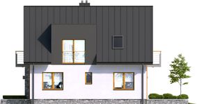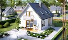 Graficzne opracowanie rzutów poglądowych widocznych na karcie projektu zostało wykonane przez Extradom.pl. Prezentowane przez Extradom.pl wizualizacje wykonane zostały przez autora projektu i należy poczytywać je jedynie za przykład i propozycję wykończenia, wizję architektoniczną autora projektu. Ostateczne wykończenie budynku może nastąpić na wiele sposobów. Szczegółowe rozwiązania zastosowane w oferowanej dokumentacji - w tym również ilość, lokalizacje i wygląd okien, drzwi, kominów - mogą w niewielkim stopniu różnić się od prezentowanej wizualizacji budynku.