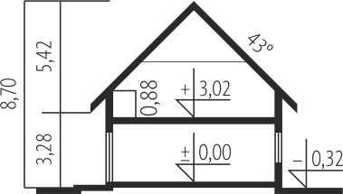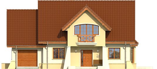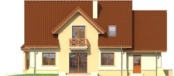 Graficzne opracowanie rzutów poglądowych widocznych na karcie projektu zostało wykonane przez Extradom.pl. Prezentowane przez Extradom.pl wizualizacje wykonane zostały przez autora projektu i należy poczytywać je jedynie za przykład i propozycję wykończenia, wizję architektoniczną autora projektu. Ostateczne wykończenie budynku może nastąpić na wiele sposobów. Szczegółowe rozwiązania zastosowane w oferowanej dokumentacji - w tym również ilość, lokalizacje i wygląd okien, drzwi, kominów - mogą w niewielkim stopniu różnić się od prezentowanej wizualizacji budynku.