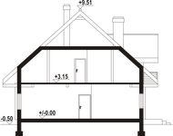 Graficzne opracowanie rzutów poglądowych widocznych na karcie projektu zostało wykonane przez Extradom.pl. Prezentowane przez Extradom.pl wizualizacje wykonane zostały przez autora projektu i należy poczytywać je jedynie za przykład i propozycję wykończenia, wizję architektoniczną autora projektu. Ostateczne wykończenie budynku może nastąpić na wiele sposobów. Szczegółowe rozwiązania zastosowane w oferowanej dokumentacji - w tym również ilość, lokalizacje i wygląd okien, drzwi, kominów - mogą w niewielkim stopniu różnić się od prezentowanej wizualizacji budynku.