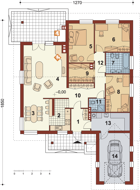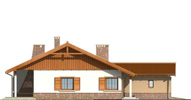 Graficzne opracowanie rzutów poglądowych widocznych na karcie projektu zostało wykonane przez Extradom.pl. Prezentowane przez Extradom.pl wizualizacje wykonane zostały przez autora projektu i należy poczytywać je jedynie za przykład i propozycję wykończenia, wizję architektoniczną autora projektu. Ostateczne wykończenie budynku może nastąpić na wiele sposobów. Szczegółowe rozwiązania zastosowane w oferowanej dokumentacji - w tym również ilość, lokalizacje i wygląd okien, drzwi, kominów - mogą w niewielkim stopniu różnić się od prezentowanej wizualizacji budynku.