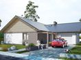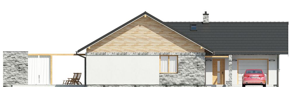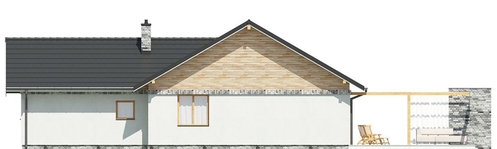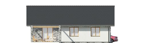 Graficzne opracowanie rzutów poglądowych widocznych na karcie projektu zostało wykonane przez Extradom.pl. Prezentowane przez Extradom.pl wizualizacje wykonane zostały przez autora projektu i należy poczytywać je jedynie za przykład i propozycję wykończenia, wizję architektoniczną autora projektu. Ostateczne wykończenie budynku może nastąpić na wiele sposobów. Szczegółowe rozwiązania zastosowane w oferowanej dokumentacji - w tym również ilość, lokalizacje i wygląd okien, drzwi, kominów - mogą w niewielkim stopniu różnić się od prezentowanej wizualizacji budynku.