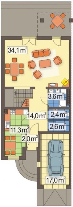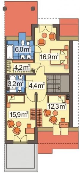 Graficzne opracowanie rzutów poglądowych widocznych na karcie projektu zostało wykonane przez Extradom.pl. Prezentowane przez Extradom.pl wizualizacje wykonane zostały przez autora projektu i należy poczytywać je jedynie za przykład i propozycję wykończenia, wizję architektoniczną autora projektu. Ostateczne wykończenie budynku może nastąpić na wiele sposobów. Szczegółowe rozwiązania zastosowane w oferowanej dokumentacji - w tym również ilość, lokalizacje i wygląd okien, drzwi, kominów - mogą w niewielkim stopniu różnić się od prezentowanej wizualizacji budynku.