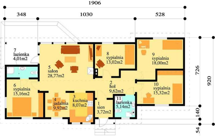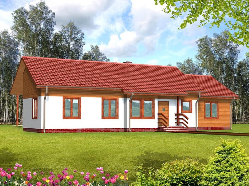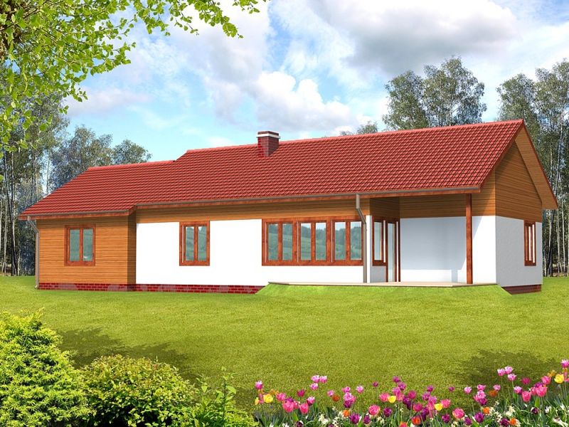 Graficzne opracowanie rzutów poglądowych widocznych na karcie projektu zostało wykonane przez Extradom.pl. Prezentowane przez Extradom.pl wizualizacje wykonane zostały przez autora projektu i należy poczytywać je jedynie za przykład i propozycję wykończenia, wizję architektoniczną autora projektu. Ostateczne wykończenie budynku może nastąpić na wiele sposobów. Szczegółowe rozwiązania zastosowane w oferowanej dokumentacji - w tym również ilość, lokalizacje i wygląd okien, drzwi, kominów - mogą w niewielkim stopniu różnić się od prezentowanej wizualizacji budynku.