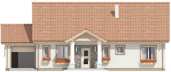 Graficzne opracowanie rzutów poglądowych widocznych na karcie projektu zostało wykonane przez Extradom.pl. Prezentowane przez Extradom.pl wizualizacje wykonane zostały przez autora projektu i należy poczytywać je jedynie za przykład i propozycję wykończenia, wizję architektoniczną autora projektu. Ostateczne wykończenie budynku może nastąpić na wiele sposobów. Szczegółowe rozwiązania zastosowane w oferowanej dokumentacji - w tym również ilość, lokalizacje i wygląd okien, drzwi, kominów - mogą w niewielkim stopniu różnić się od prezentowanej wizualizacji budynku.