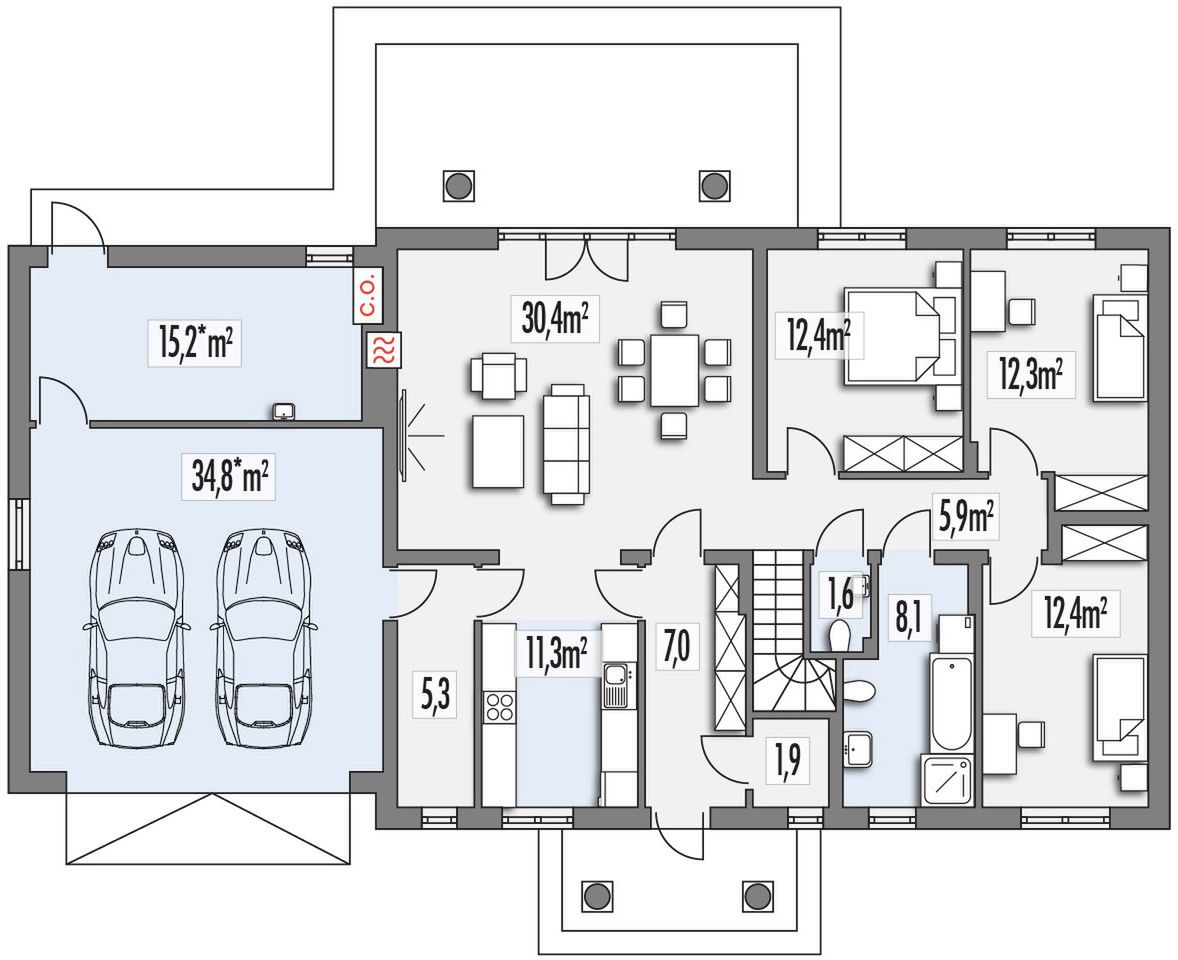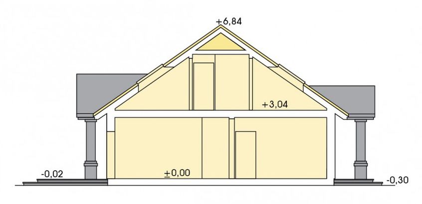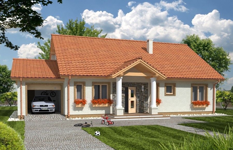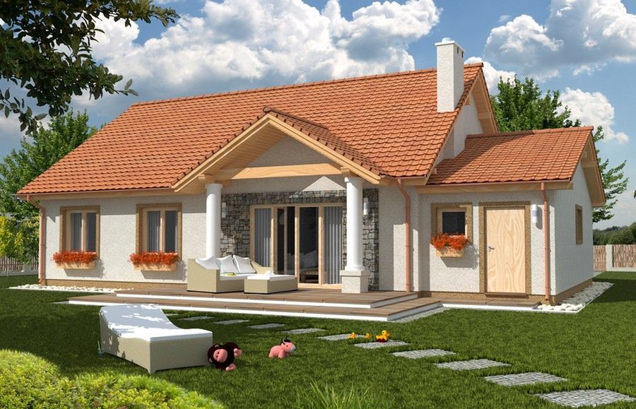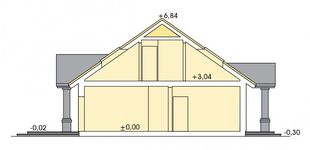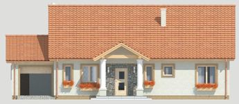 Graficzne opracowanie rzutów poglądowych widocznych na karcie projektu zostało wykonane przez Extradom.pl. Prezentowane przez Extradom.pl wizualizacje wykonane zostały przez autora projektu i należy poczytywać je jedynie za przykład i propozycję wykończenia, wizję architektoniczną autora projektu. Ostateczne wykończenie budynku może nastąpić na wiele sposobów. Szczegółowe rozwiązania zastosowane w oferowanej dokumentacji - w tym również ilość, lokalizacje i wygląd okien, drzwi, kominów - mogą w niewielkim stopniu różnić się od prezentowanej wizualizacji budynku.
