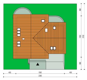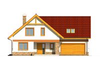 Graficzne opracowanie rzutów poglądowych widocznych na karcie projektu zostało wykonane przez Extradom.pl. Prezentowane przez Extradom.pl wizualizacje wykonane zostały przez autora projektu i należy poczytywać je jedynie za przykład i propozycję wykończenia, wizję architektoniczną autora projektu. Ostateczne wykończenie budynku może nastąpić na wiele sposobów. Szczegółowe rozwiązania zastosowane w oferowanej dokumentacji - w tym również ilość, lokalizacje i wygląd okien, drzwi, kominów - mogą w niewielkim stopniu różnić się od prezentowanej wizualizacji budynku.