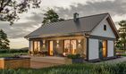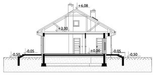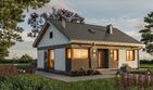 Graficzne opracowanie rzutów poglądowych widocznych na karcie projektu zostało wykonane przez Extradom.pl. Prezentowane przez Extradom.pl wizualizacje wykonane zostały przez autora projektu i należy poczytywać je jedynie za przykład i propozycję wykończenia, wizję architektoniczną autora projektu. Ostateczne wykończenie budynku może nastąpić na wiele sposobów. Szczegółowe rozwiązania zastosowane w oferowanej dokumentacji - w tym również ilość, lokalizacje i wygląd okien, drzwi, kominów - mogą w niewielkim stopniu różnić się od prezentowanej wizualizacji budynku.