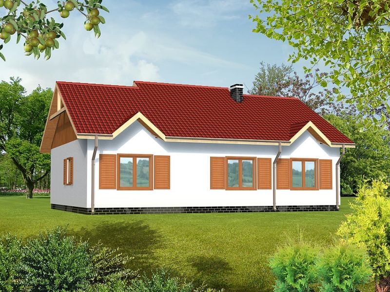 Graficzne opracowanie rzutów poglądowych widocznych na karcie projektu zostało wykonane przez Extradom.pl. Prezentowane przez Extradom.pl wizualizacje wykonane zostały przez autora projektu i należy poczytywać je jedynie za przykład i propozycję wykończenia, wizję architektoniczną autora projektu. Ostateczne wykończenie budynku może nastąpić na wiele sposobów. Szczegółowe rozwiązania zastosowane w oferowanej dokumentacji - w tym również ilość, lokalizacje i wygląd okien, drzwi, kominów - mogą w niewielkim stopniu różnić się od prezentowanej wizualizacji budynku.