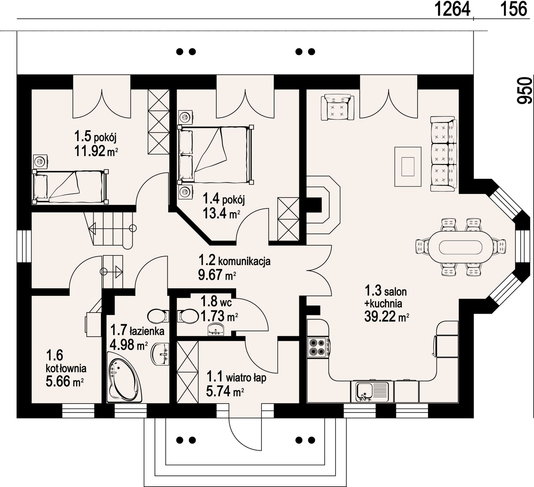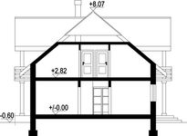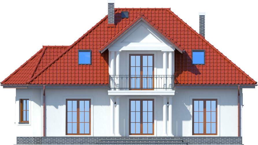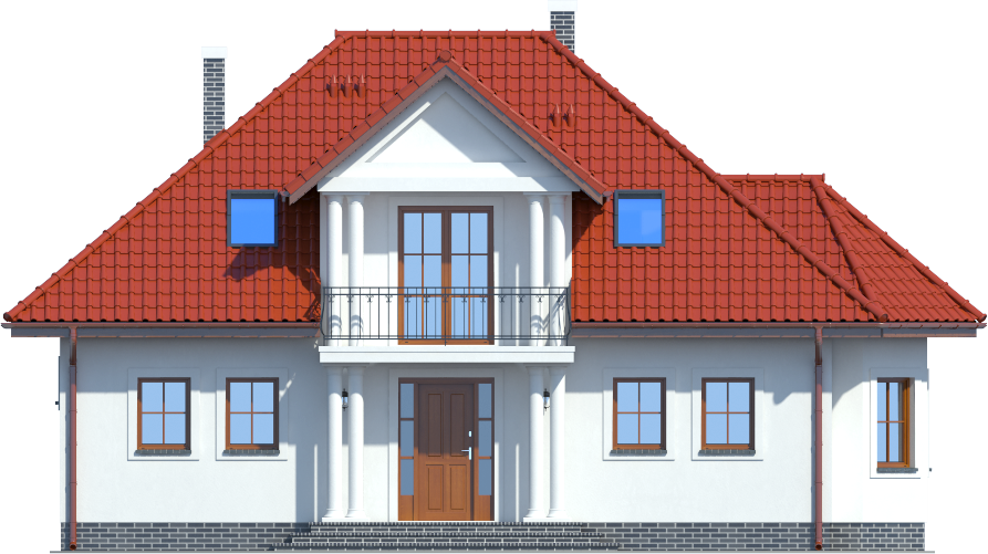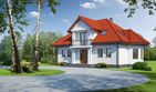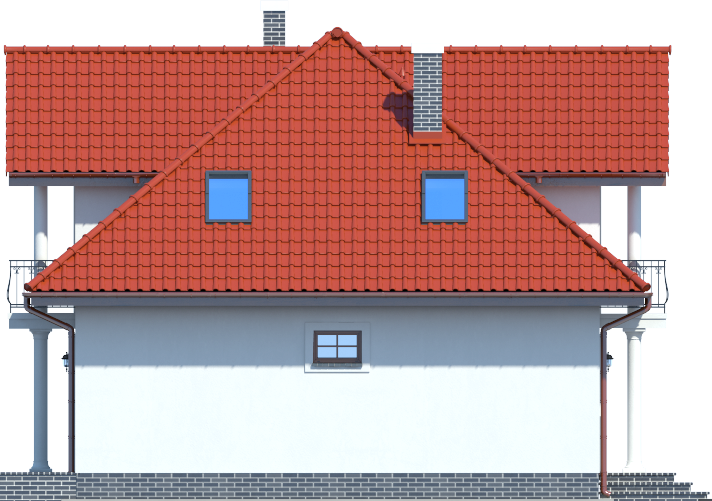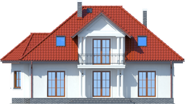 Graficzne opracowanie rzutów poglądowych widocznych na karcie projektu zostało wykonane przez Extradom.pl. Prezentowane przez Extradom.pl wizualizacje wykonane zostały przez autora projektu i należy poczytywać je jedynie za przykład i propozycję wykończenia, wizję architektoniczną autora projektu. Ostateczne wykończenie budynku może nastąpić na wiele sposobów. Szczegółowe rozwiązania zastosowane w oferowanej dokumentacji - w tym również ilość, lokalizacje i wygląd okien, drzwi, kominów - mogą w niewielkim stopniu różnić się od prezentowanej wizualizacji budynku.
