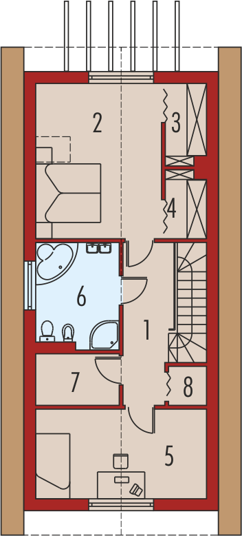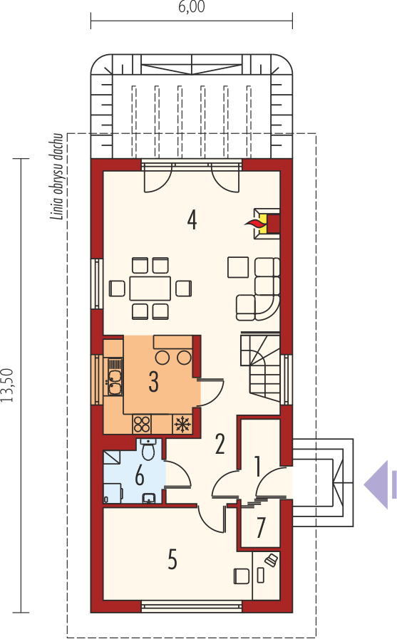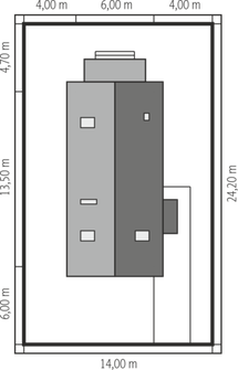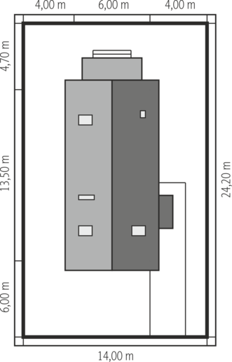Graficzne opracowanie rzutów poglądowych widocznych na karcie projektu zostało wykonane przez Extradom.pl. Prezentowane przez Extradom.pl wizualizacje wykonane zostały przez autora projektu i należy poczytywać je jedynie za przykład i propozycję wykończenia, wizję architektoniczną autora projektu. Ostateczne wykończenie budynku może nastąpić na wiele sposobów. Szczegółowe rozwiązania zastosowane w oferowanej dokumentacji - w tym również ilość, lokalizacje i wygląd okien, drzwi, kominów - mogą w niewielkim stopniu różnić się od prezentowanej wizualizacji budynku.