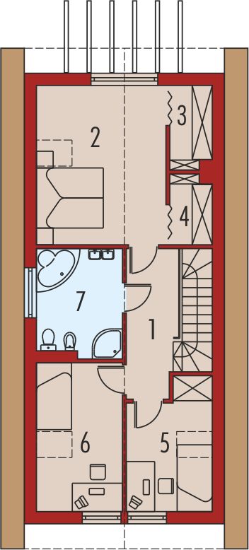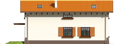 Graficzne opracowanie rzutów poglądowych widocznych na karcie projektu zostało wykonane przez Extradom.pl. Prezentowane przez Extradom.pl wizualizacje wykonane zostały przez autora projektu i należy poczytywać je jedynie za przykład i propozycję wykończenia, wizję architektoniczną autora projektu. Ostateczne wykończenie budynku może nastąpić na wiele sposobów. Szczegółowe rozwiązania zastosowane w oferowanej dokumentacji - w tym również ilość, lokalizacje i wygląd okien, drzwi, kominów - mogą w niewielkim stopniu różnić się od prezentowanej wizualizacji budynku.