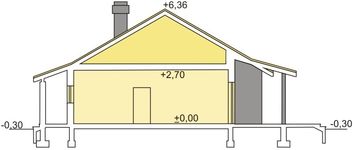 Strop: lekki podwieszany. Ściany zewnętrzne: pustaki ceramiczne 25cm + styropian 12cm. Pokrycie dachowe: dachówka ceramiczna.