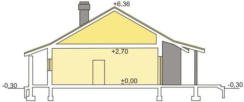 Strop: lekki podwieszany. Ściany zewnętrzne: pustaki ceramiczne 25cm + styropian 12cm. Pokrycie dachowe: dachówka ceramiczna.