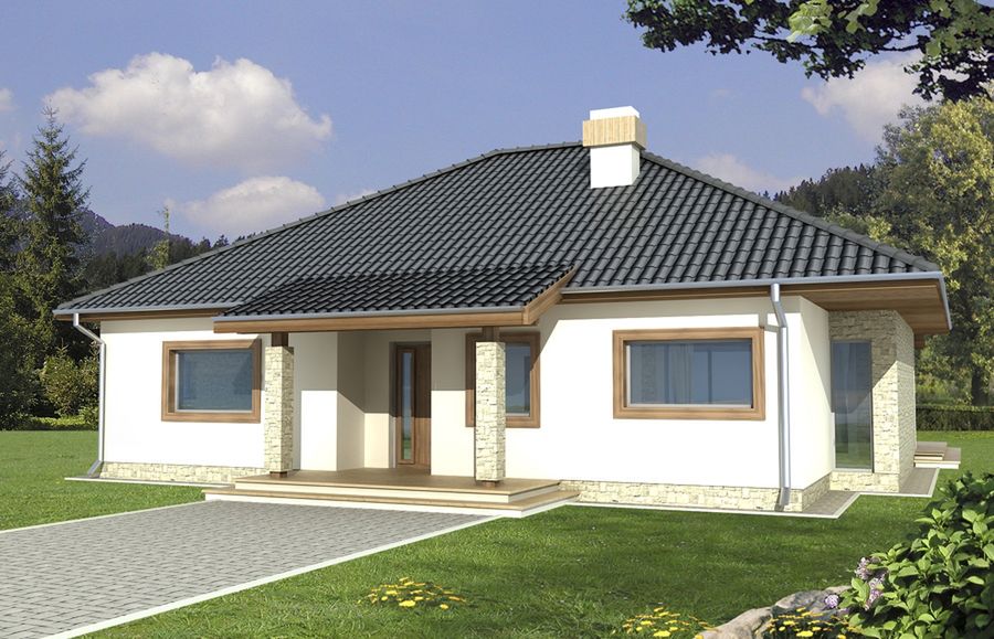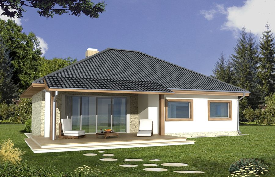 Graficzne opracowanie rzutów poglądowych widocznych na karcie projektu zostało wykonane przez Extradom.pl. Prezentowane przez Extradom.pl wizualizacje wykonane zostały przez autora projektu i należy poczytywać je jedynie za przykład i propozycję wykończenia, wizję architektoniczną autora projektu. Ostateczne wykończenie budynku może nastąpić na wiele sposobów. Szczegółowe rozwiązania zastosowane w oferowanej dokumentacji - w tym również ilość, lokalizacje i wygląd okien, drzwi, kominów - mogą w niewielkim stopniu różnić się od prezentowanej wizualizacji budynku.