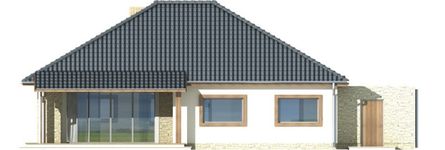 Graficzne opracowanie rzutów poglądowych widocznych na karcie projektu zostało wykonane przez Extradom.pl. Prezentowane przez Extradom.pl wizualizacje wykonane zostały przez autora projektu i należy poczytywać je jedynie za przykład i propozycję wykończenia, wizję architektoniczną autora projektu. Ostateczne wykończenie budynku może nastąpić na wiele sposobów. Szczegółowe rozwiązania zastosowane w oferowanej dokumentacji - w tym również ilość, lokalizacje i wygląd okien, drzwi, kominów - mogą w niewielkim stopniu różnić się od prezentowanej wizualizacji budynku.