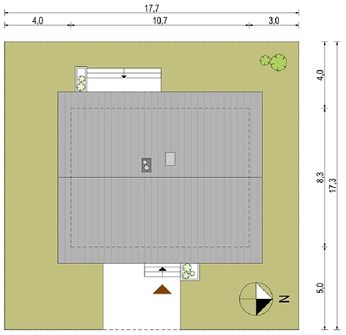 Graficzne opracowanie rzutów poglądowych widocznych na karcie projektu zostało wykonane przez Extradom.pl. Prezentowane przez Extradom.pl wizualizacje wykonane zostały przez autora projektu i należy poczytywać je jedynie za przykład i propozycję wykończenia, wizję architektoniczną autora projektu. Ostateczne wykończenie budynku może nastąpić na wiele sposobów. Szczegółowe rozwiązania zastosowane w oferowanej dokumentacji - w tym również ilość, lokalizacje i wygląd okien, drzwi, kominów - mogą w niewielkim stopniu różnić się od prezentowanej wizualizacji budynku.