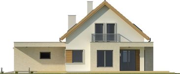 Graficzne opracowanie rzutów poglądowych widocznych na karcie projektu zostało wykonane przez Extradom.pl. Prezentowane przez Extradom.pl wizualizacje wykonane zostały przez autora projektu i należy poczytywać je jedynie za przykład i propozycję wykończenia, wizję architektoniczną autora projektu. Ostateczne wykończenie budynku może nastąpić na wiele sposobów. Szczegółowe rozwiązania zastosowane w oferowanej dokumentacji - w tym również ilość, lokalizacje i wygląd okien, drzwi, kominów - mogą w niewielkim stopniu różnić się od prezentowanej wizualizacji budynku.