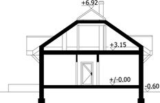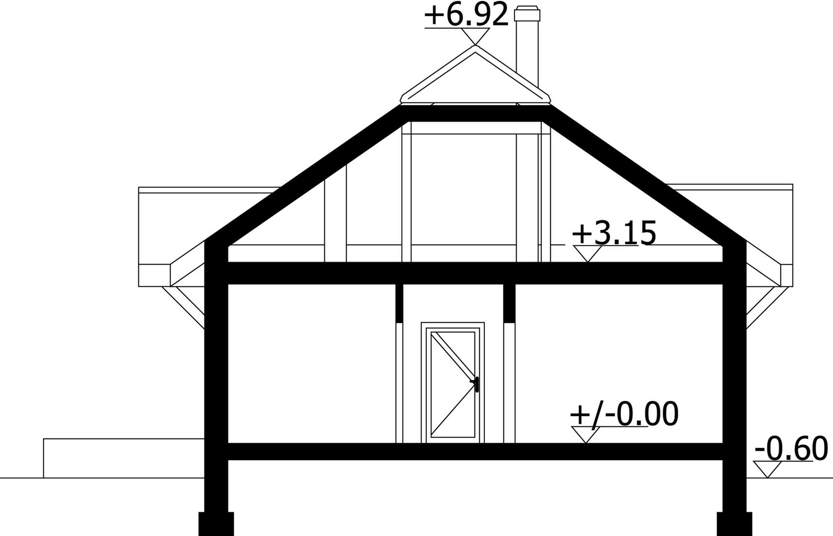Wysokość ścianki kolankowej: 0.3 m. Strop: płyta żelbetowa. Pokrycie dachu: dachówka ceramiczna. Ściany zewnętrzne: pustaki ceramiczne + styropian. Ściany wewnętrzne: pustaki ceramiczne. Typ ogrzewania: kocioł gazowy.