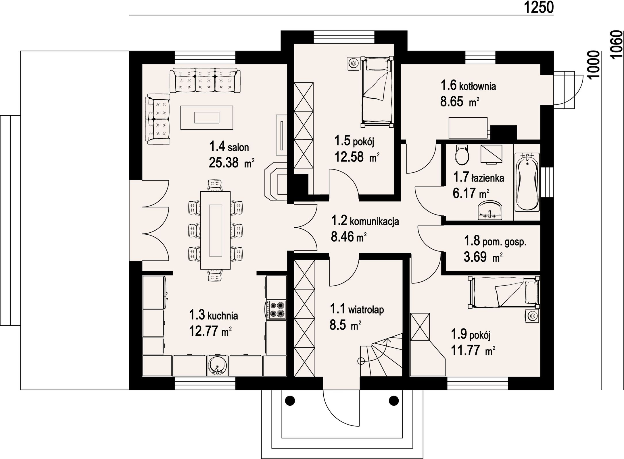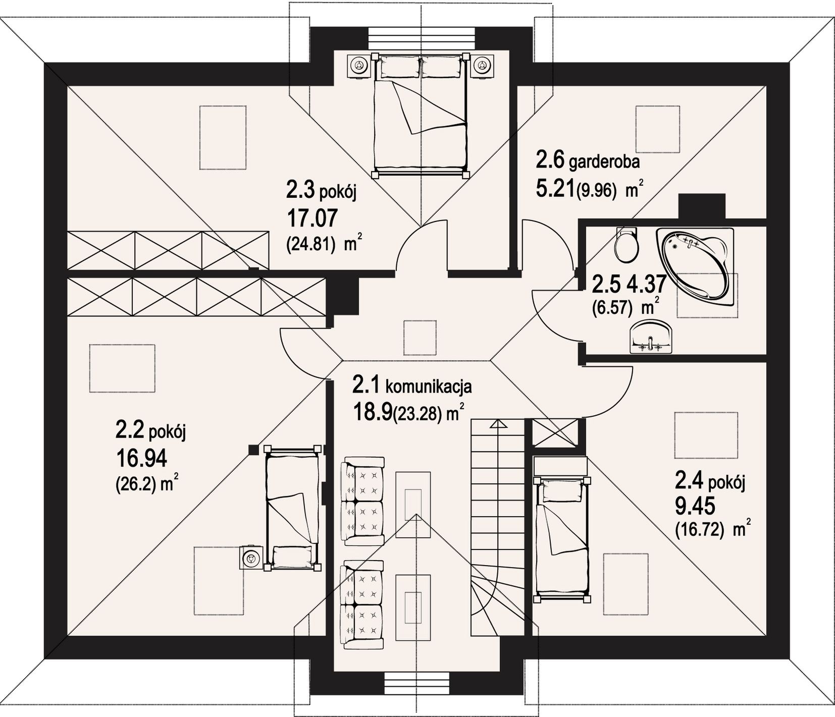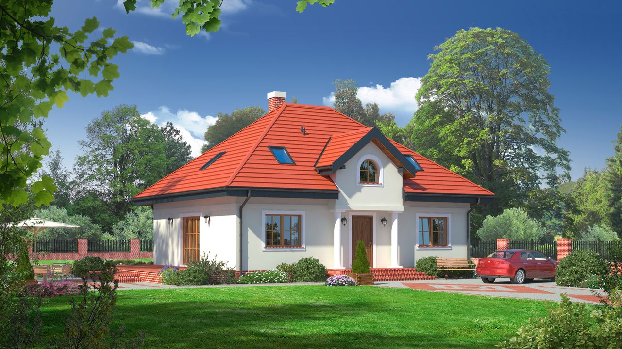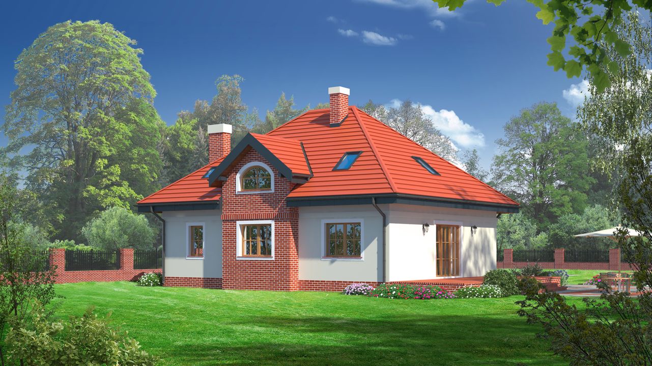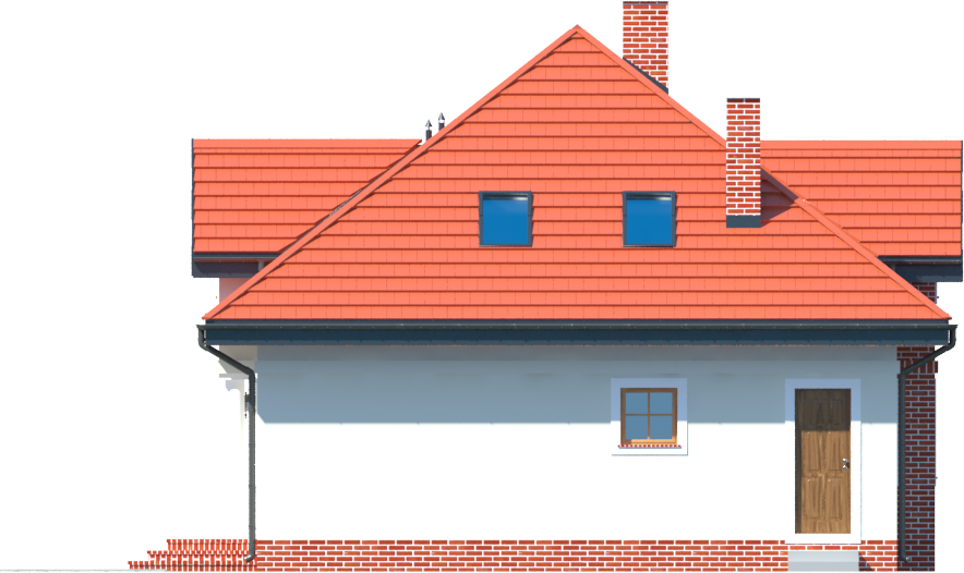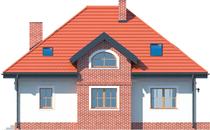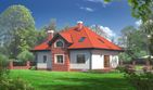 Graficzne opracowanie rzutów poglądowych widocznych na karcie projektu zostało wykonane przez Extradom.pl. Prezentowane przez Extradom.pl wizualizacje wykonane zostały przez autora projektu i należy poczytywać je jedynie za przykład i propozycję wykończenia, wizję architektoniczną autora projektu. Ostateczne wykończenie budynku może nastąpić na wiele sposobów. Szczegółowe rozwiązania zastosowane w oferowanej dokumentacji - w tym również ilość, lokalizacje i wygląd okien, drzwi, kominów - mogą w niewielkim stopniu różnić się od prezentowanej wizualizacji budynku.