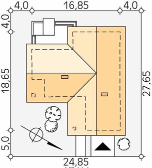 Graficzne opracowanie rzutów poglądowych widocznych na karcie projektu zostało wykonane przez Extradom.pl. Prezentowane przez Extradom.pl wizualizacje wykonane zostały przez autora projektu i należy poczytywać je jedynie za przykład i propozycję wykończenia, wizję architektoniczną autora projektu. Ostateczne wykończenie budynku może nastąpić na wiele sposobów. Szczegółowe rozwiązania zastosowane w oferowanej dokumentacji - w tym również ilość, lokalizacje i wygląd okien, drzwi, kominów - mogą w niewielkim stopniu różnić się od prezentowanej wizualizacji budynku.