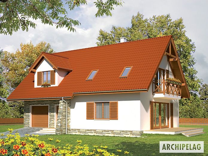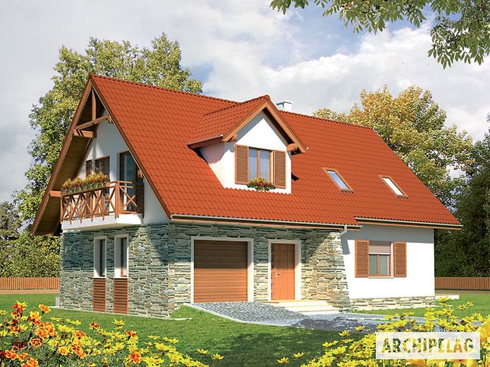 Graficzne opracowanie rzutów poglądowych widocznych na karcie projektu zostało wykonane przez Extradom.pl. Prezentowane przez Extradom.pl wizualizacje wykonane zostały przez autora projektu i należy poczytywać je jedynie za przykład i propozycję wykończenia, wizję architektoniczną autora projektu. Ostateczne wykończenie budynku może nastąpić na wiele sposobów. Szczegółowe rozwiązania zastosowane w oferowanej dokumentacji - w tym również ilość, lokalizacje i wygląd okien, drzwi, kominów - mogą w niewielkim stopniu różnić się od prezentowanej wizualizacji budynku.