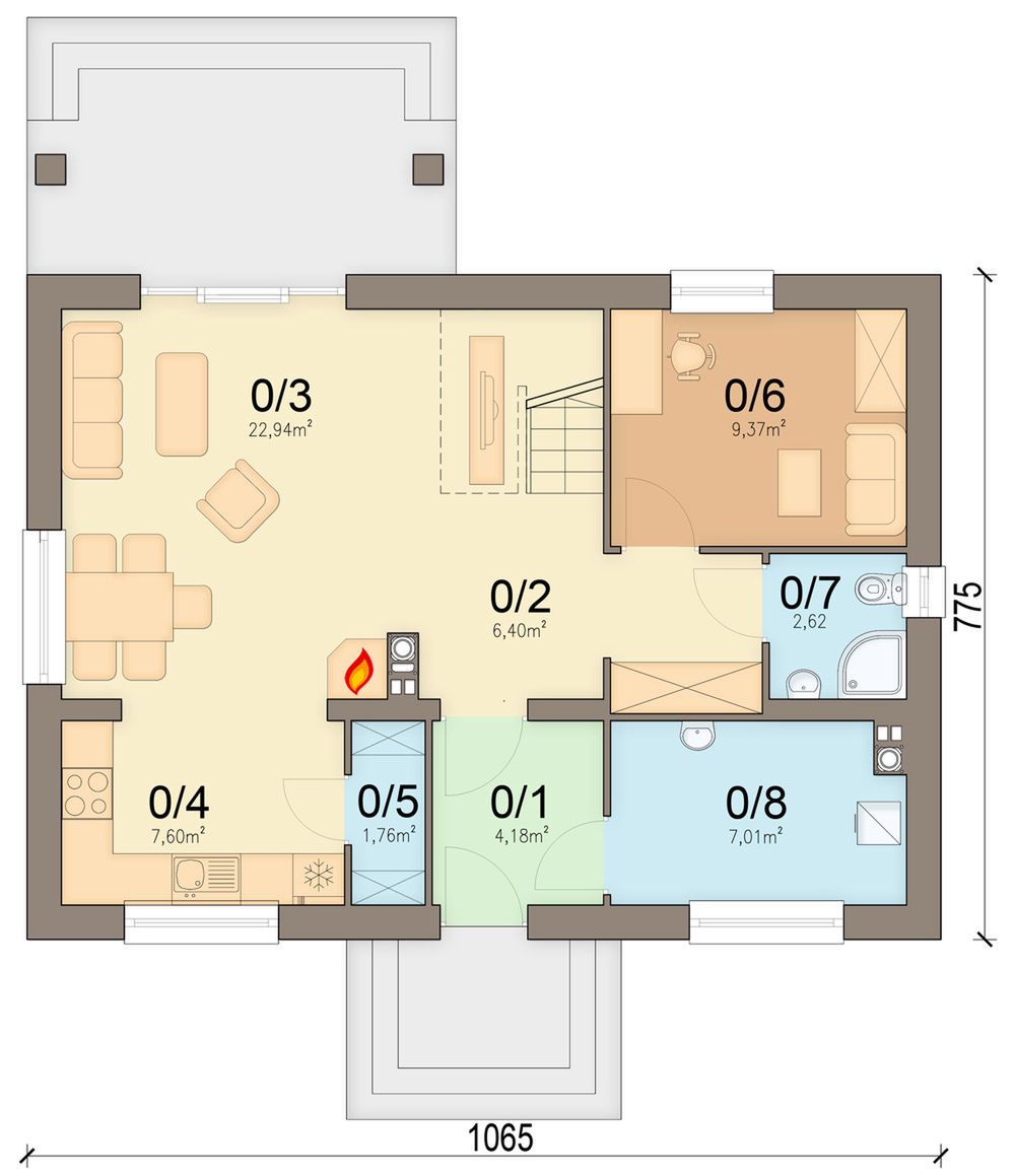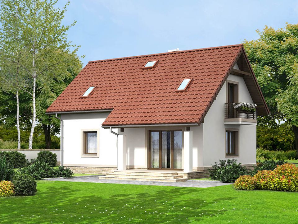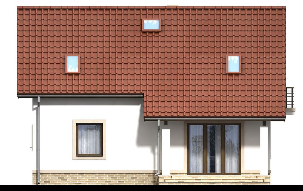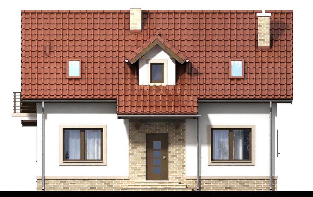 Graficzne opracowanie rzutów poglądowych widocznych na karcie projektu zostało wykonane przez Extradom.pl. Prezentowane przez Extradom.pl wizualizacje wykonane zostały przez autora projektu i należy poczytywać je jedynie za przykład i propozycję wykończenia, wizję architektoniczną autora projektu. Ostateczne wykończenie budynku może nastąpić na wiele sposobów. Szczegółowe rozwiązania zastosowane w oferowanej dokumentacji - w tym również ilość, lokalizacje i wygląd okien, drzwi, kominów - mogą w niewielkim stopniu różnić się od prezentowanej wizualizacji budynku.