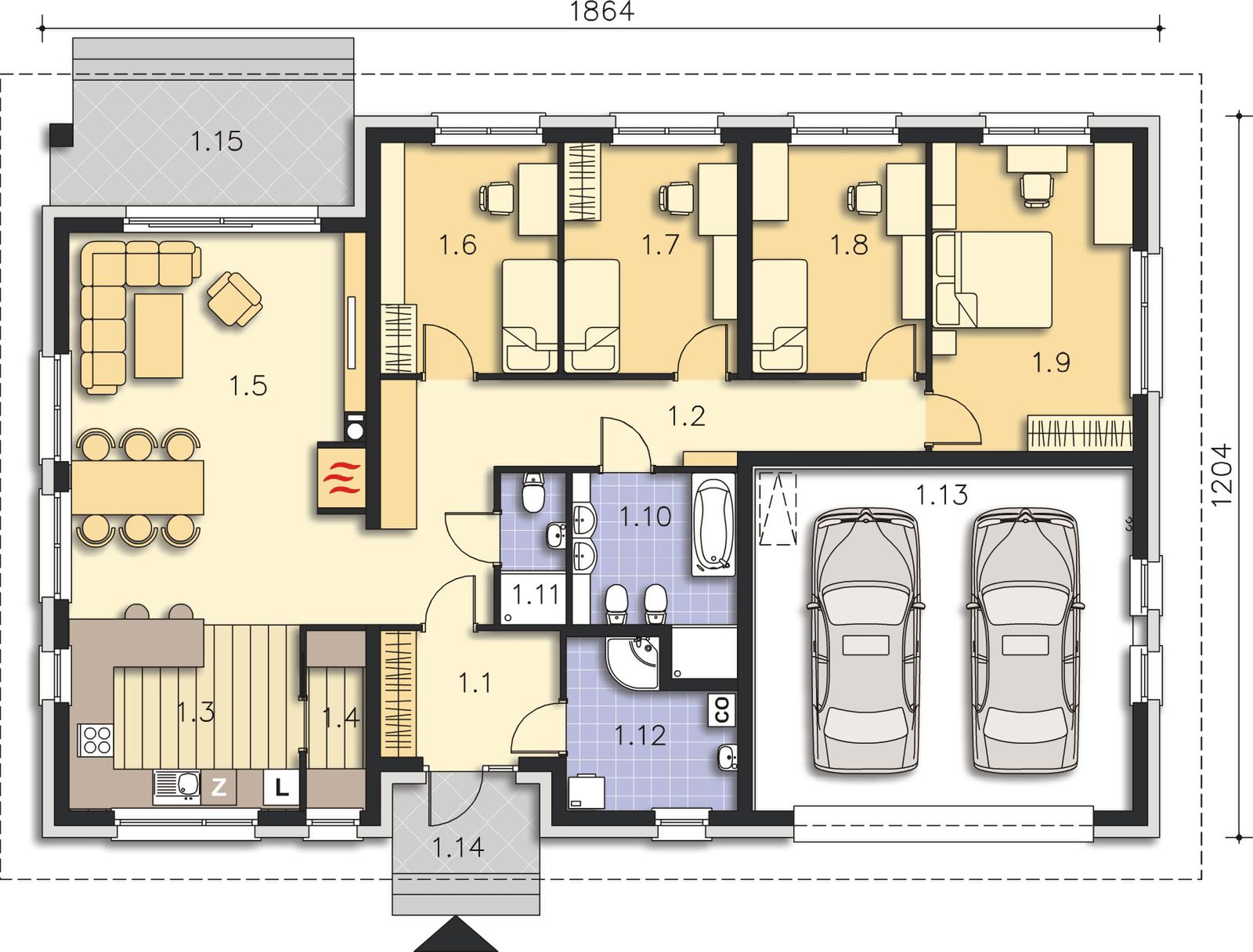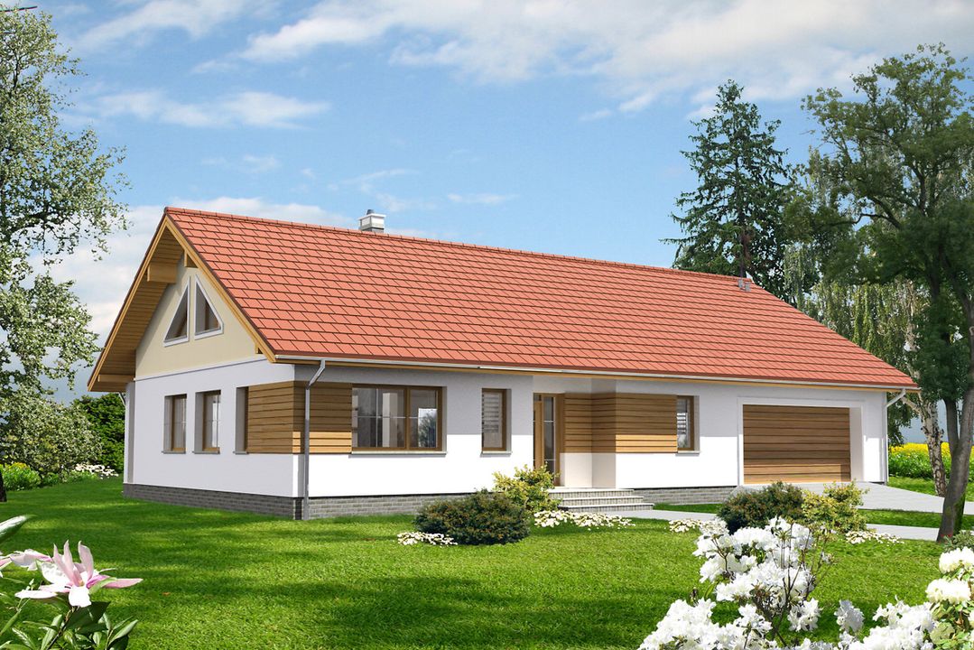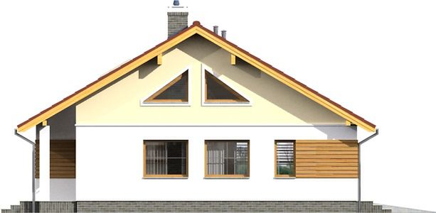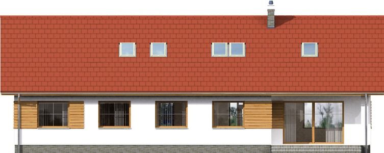 Graficzne opracowanie rzutów poglądowych widocznych na karcie projektu zostało wykonane przez Extradom.pl. Prezentowane przez Extradom.pl wizualizacje wykonane zostały przez autora projektu i należy poczytywać je jedynie za przykład i propozycję wykończenia, wizję architektoniczną autora projektu. Ostateczne wykończenie budynku może nastąpić na wiele sposobów. Szczegółowe rozwiązania zastosowane w oferowanej dokumentacji - w tym również ilość, lokalizacje i wygląd okien, drzwi, kominów - mogą w niewielkim stopniu różnić się od prezentowanej wizualizacji budynku.