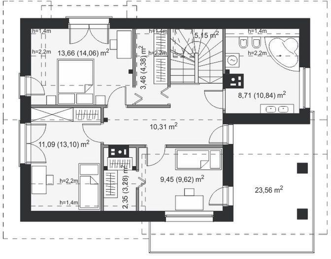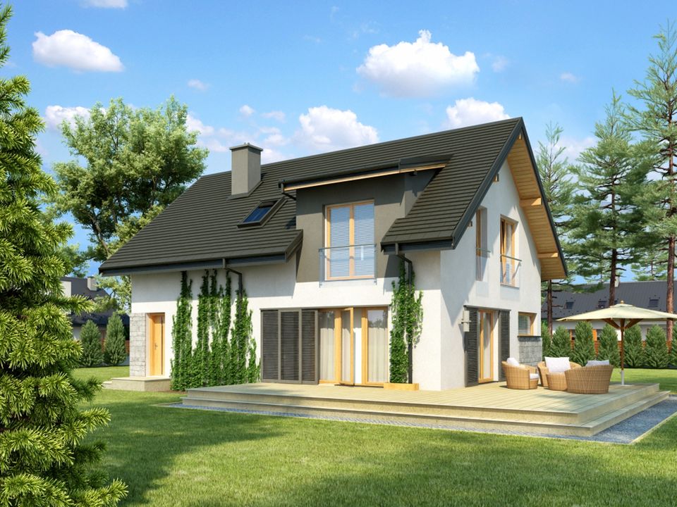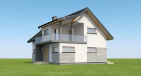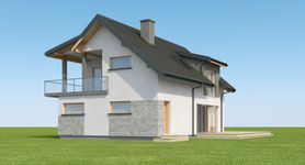 Graficzne opracowanie rzutów poglądowych widocznych na karcie projektu zostało wykonane przez Extradom.pl. Prezentowane przez Extradom.pl wizualizacje wykonane zostały przez autora projektu i należy poczytywać je jedynie za przykład i propozycję wykończenia, wizję architektoniczną autora projektu. Ostateczne wykończenie budynku może nastąpić na wiele sposobów. Szczegółowe rozwiązania zastosowane w oferowanej dokumentacji - w tym również ilość, lokalizacje i wygląd okien, drzwi, kominów - mogą w niewielkim stopniu różnić się od prezentowanej wizualizacji budynku.