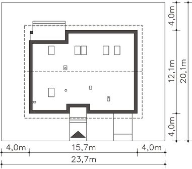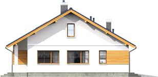 Graficzne opracowanie rzutów poglądowych widocznych na karcie projektu zostało wykonane przez Extradom.pl. Prezentowane przez Extradom.pl wizualizacje wykonane zostały przez autora projektu i należy poczytywać je jedynie za przykład i propozycję wykończenia, wizję architektoniczną autora projektu. Ostateczne wykończenie budynku może nastąpić na wiele sposobów. Szczegółowe rozwiązania zastosowane w oferowanej dokumentacji - w tym również ilość, lokalizacje i wygląd okien, drzwi, kominów - mogą w niewielkim stopniu różnić się od prezentowanej wizualizacji budynku.