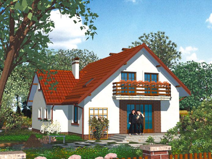 Tradycyjna murowana. Ściany - murowane z bloczków gazobetonowych (np. ) lub cegły ceramicznej (np. ), strop - gęstożebrowy, dach - drewniany, pokrycie blachą dachówkową, tynk - mineralny.