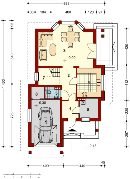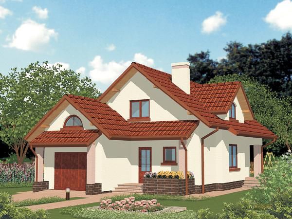 Graficzne opracowanie rzutów poglądowych widocznych na karcie projektu zostało wykonane przez Extradom.pl. Prezentowane przez Extradom.pl wizualizacje wykonane zostały przez autora projektu i należy poczytywać je jedynie za przykład i propozycję wykończenia, wizję architektoniczną autora projektu. Ostateczne wykończenie budynku może nastąpić na wiele sposobów. Szczegółowe rozwiązania zastosowane w oferowanej dokumentacji - w tym również ilość, lokalizacje i wygląd okien, drzwi, kominów - mogą w niewielkim stopniu różnić się od prezentowanej wizualizacji budynku.