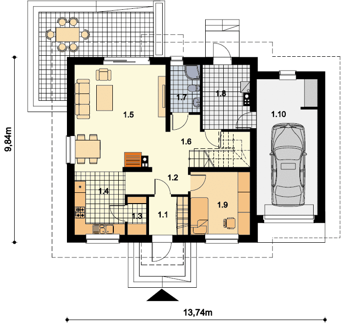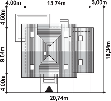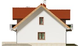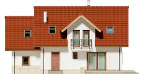 Graficzne opracowanie rzutów poglądowych widocznych na karcie projektu zostało wykonane przez Extradom.pl. Prezentowane przez Extradom.pl wizualizacje wykonane zostały przez autora projektu i należy poczytywać je jedynie za przykład i propozycję wykończenia, wizję architektoniczną autora projektu. Ostateczne wykończenie budynku może nastąpić na wiele sposobów. Szczegółowe rozwiązania zastosowane w oferowanej dokumentacji - w tym również ilość, lokalizacje i wygląd okien, drzwi, kominów - mogą w niewielkim stopniu różnić się od prezentowanej wizualizacji budynku.