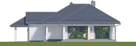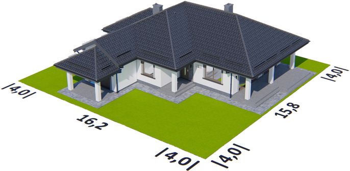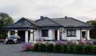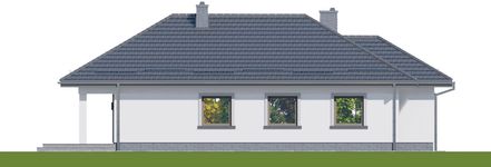 Graficzne opracowanie rzutów poglądowych widocznych na karcie projektu zostało wykonane przez Extradom.pl. Prezentowane przez Extradom.pl wizualizacje wykonane zostały przez autora projektu i należy poczytywać je jedynie za przykład i propozycję wykończenia, wizję architektoniczną autora projektu. Ostateczne wykończenie budynku może nastąpić na wiele sposobów. Szczegółowe rozwiązania zastosowane w oferowanej dokumentacji - w tym również ilość, lokalizacje i wygląd okien, drzwi, kominów - mogą w niewielkim stopniu różnić się od prezentowanej wizualizacji budynku.