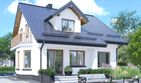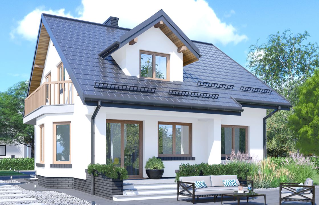Graficzne opracowanie rzutów poglądowych widocznych na karcie projektu zostało wykonane przez Extradom.pl. Prezentowane przez Extradom.pl wizualizacje wykonane zostały przez autora projektu i należy poczytywać je jedynie za przykład i propozycję wykończenia, wizję architektoniczną autora projektu. Ostateczne wykończenie budynku może nastąpić na wiele sposobów. Szczegółowe rozwiązania zastosowane w oferowanej dokumentacji - w tym również ilość, lokalizacje i wygląd okien, drzwi, kominów - mogą w niewielkim stopniu różnić się od prezentowanej wizualizacji budynku.