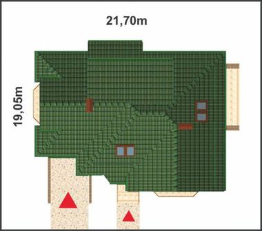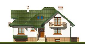 Graficzne opracowanie rzutów poglądowych widocznych na karcie projektu zostało wykonane przez Extradom.pl. Prezentowane przez Extradom.pl wizualizacje wykonane zostały przez autora projektu i należy poczytywać je jedynie za przykład i propozycję wykończenia, wizję architektoniczną autora projektu. Ostateczne wykończenie budynku może nastąpić na wiele sposobów. Szczegółowe rozwiązania zastosowane w oferowanej dokumentacji - w tym również ilość, lokalizacje i wygląd okien, drzwi, kominów - mogą w niewielkim stopniu różnić się od prezentowanej wizualizacji budynku.